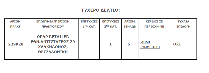 Σε ποια περιοχή της πόλης παίχτηκε το τυχερό δελτίο.