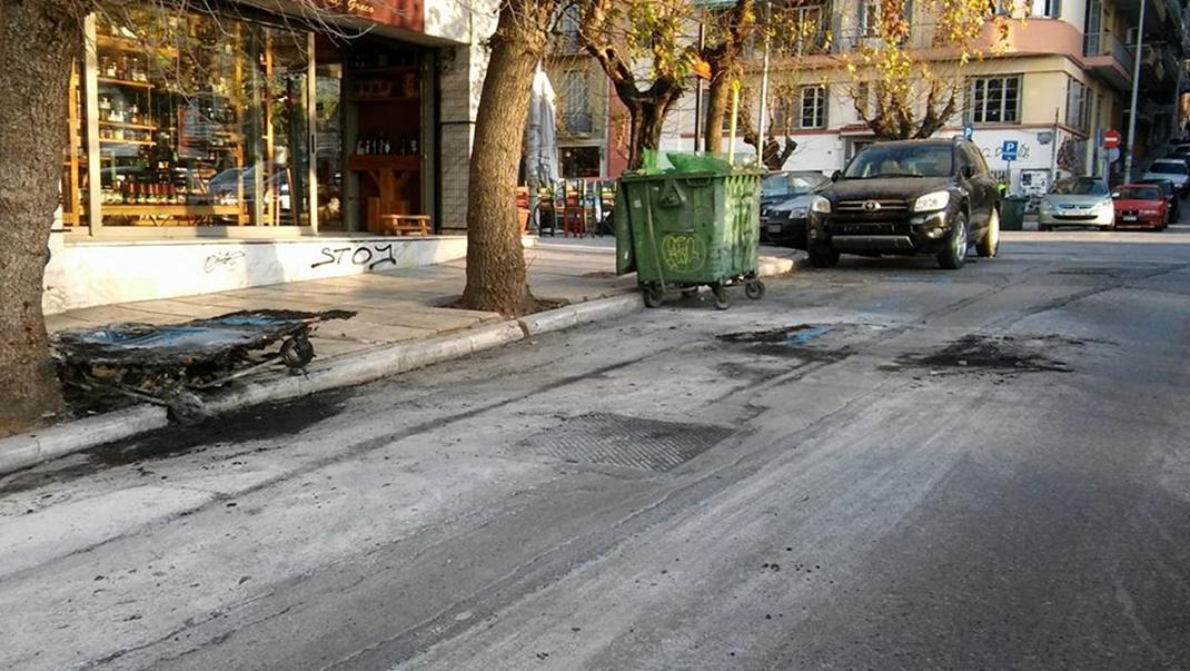 Στον τόπο όπου κατέληξε η χθεσινή πορεία των αντιεξουσιαστών, στην πλατεία Αρχαίας Αγοράς, η εικόνα αποδίδει με χαρακτηριστικό τρόπο τη νύχτα έντασης και τα επεισόδια που σημειώθηκαν.