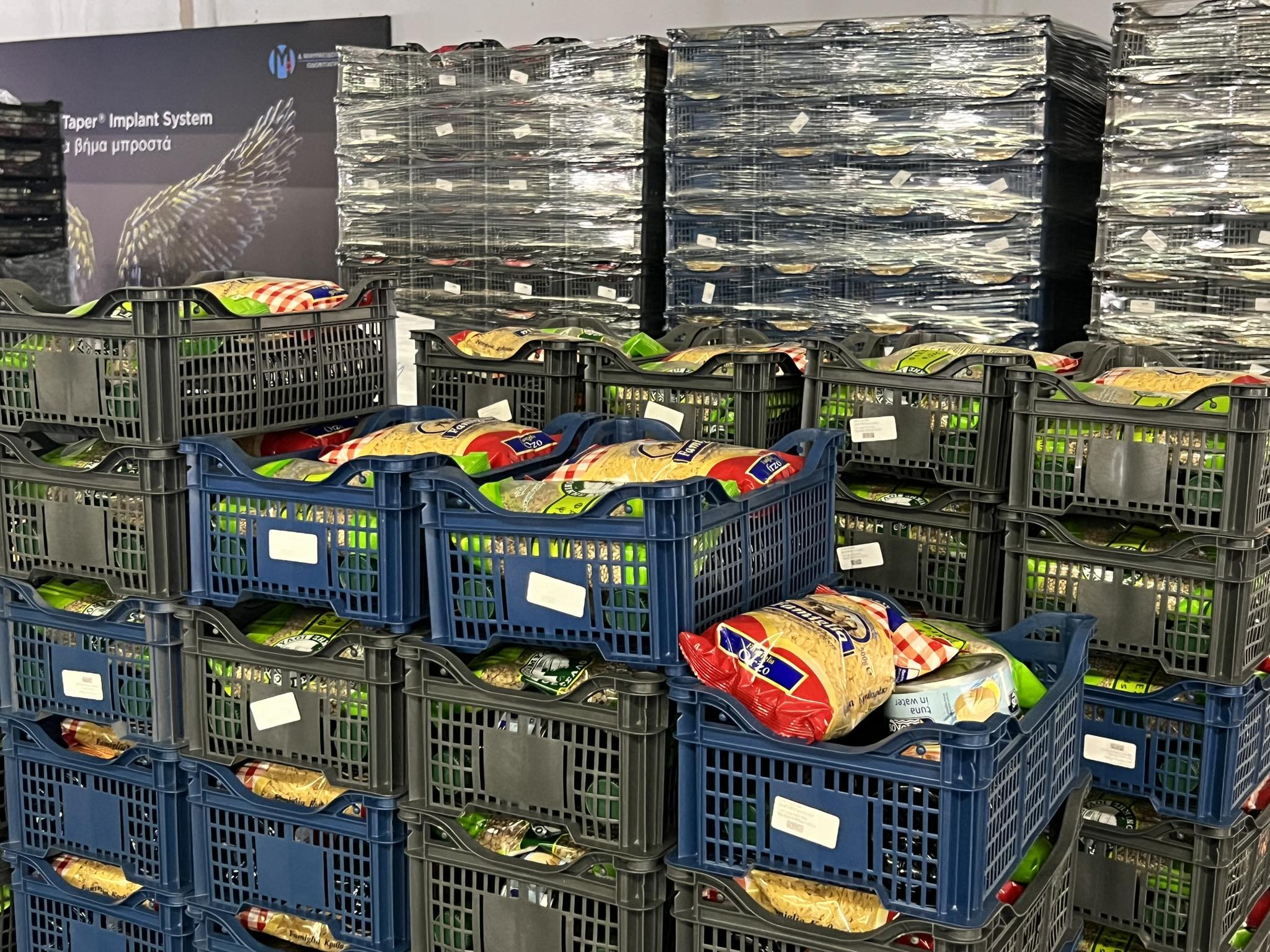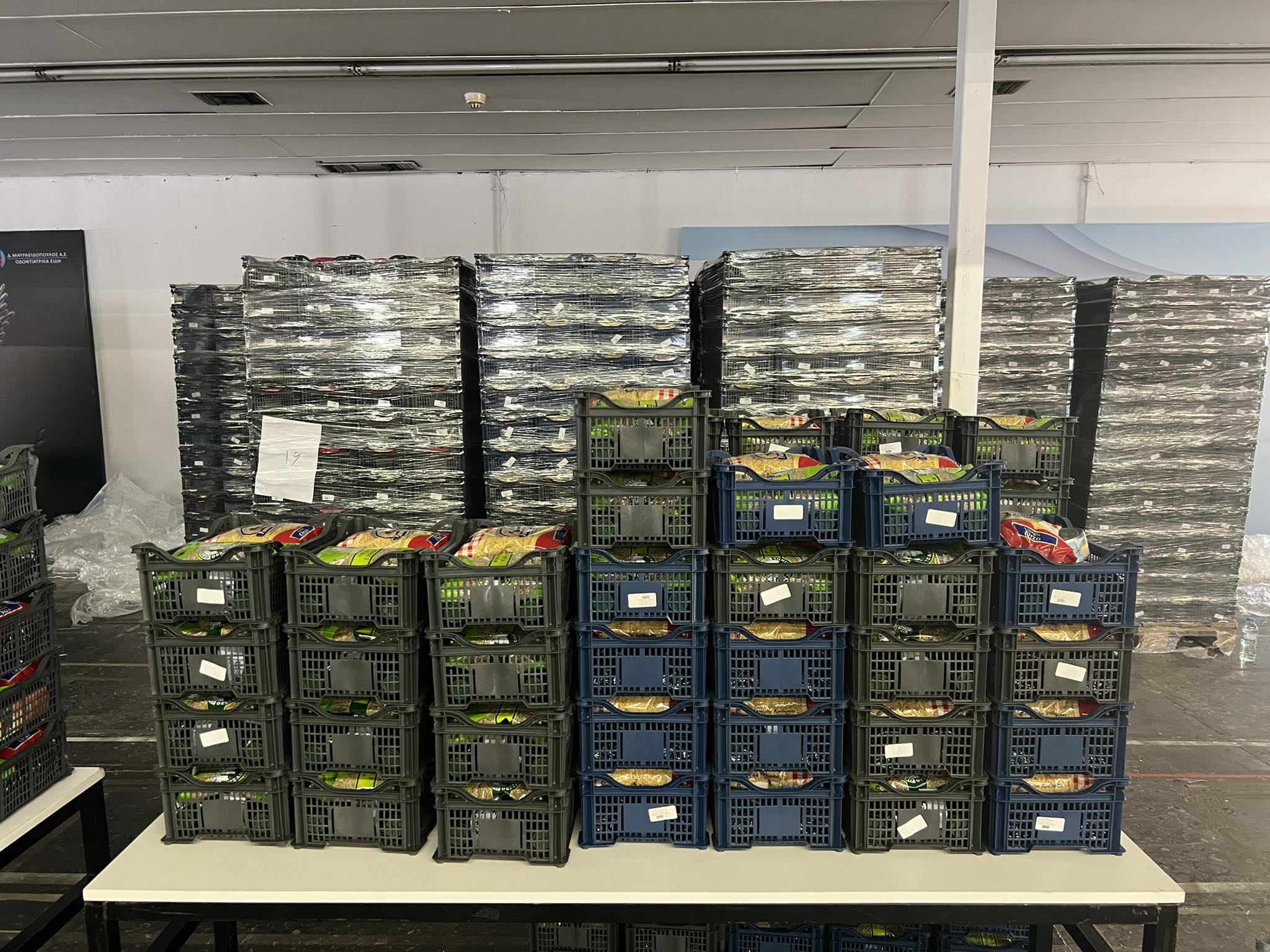 Ελαιόλαδο, ζυμαρικά, φακές, κονσέρβα τόνος, κρέας βόειο, κρέας χοιρινό, φέτα, γραβιέρα) και βρεφικά είδη (σε οικογένειες με βρέφη 0-2 ετών) είναι τα προϊόντα που από νωρίς το πρωί οι εθελοντές στοίβαξαν και οργάνωσαν έτσι ώστε να “χαρίσουν” σε όσους τα χρειάζονται.