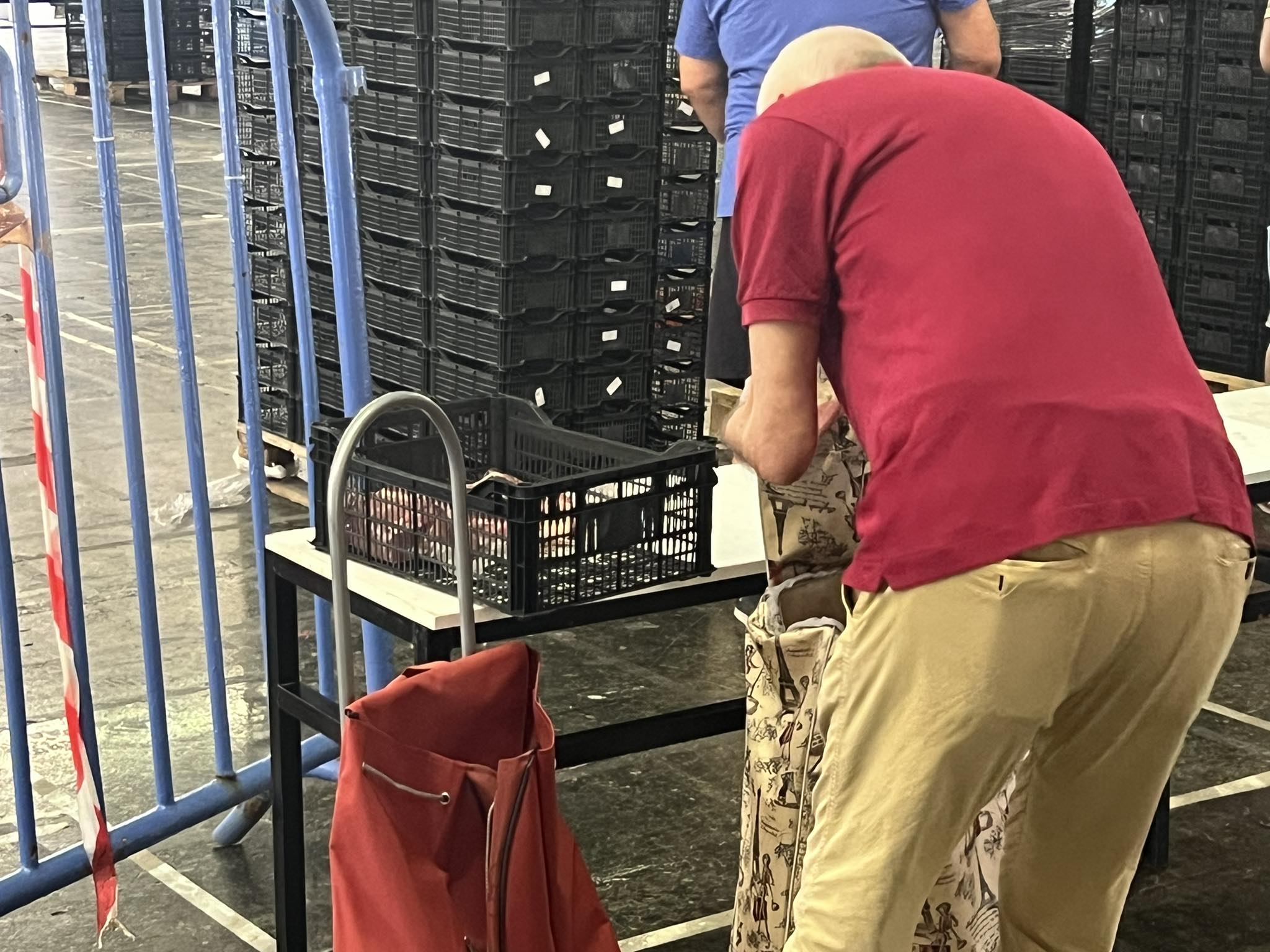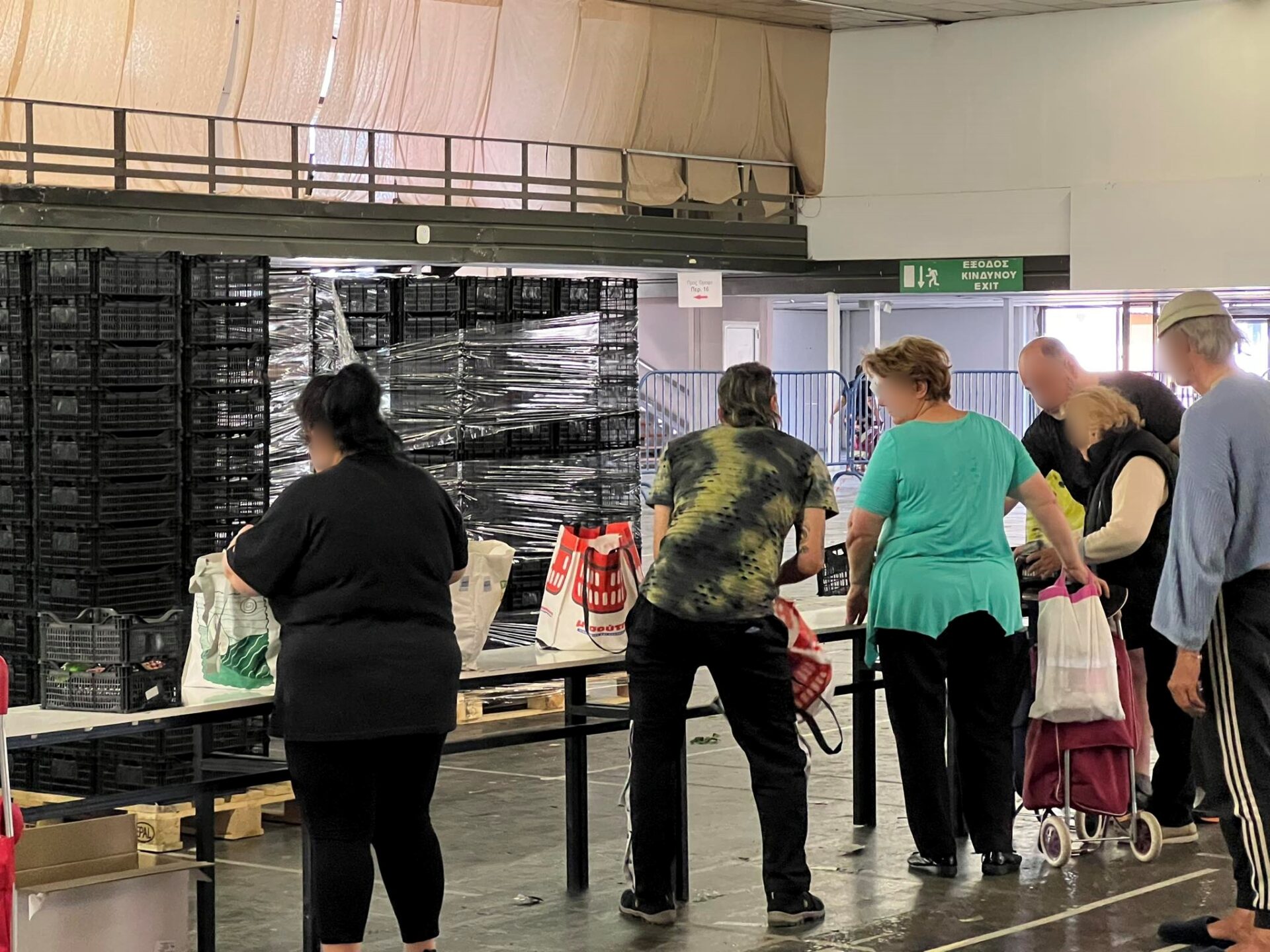 Φτάνουμε και βλέπω ανθρώπους να τακτοποιούν με ευλάβεια τα προϊόντα που τους δόθηκαν. Άλλοι έχουν απλές σακούλες, άλλοι έχουν φέρει τα καρότσια της λαϊκής για να τα σέρνουν. Μεγάλοι άνθρωποι αλλά και νεότεροι περιμένουν στην ουρά, δίνουν τα στοιχεία τους και έπειτα παίρνουν αυτό που τους αναλογεί.