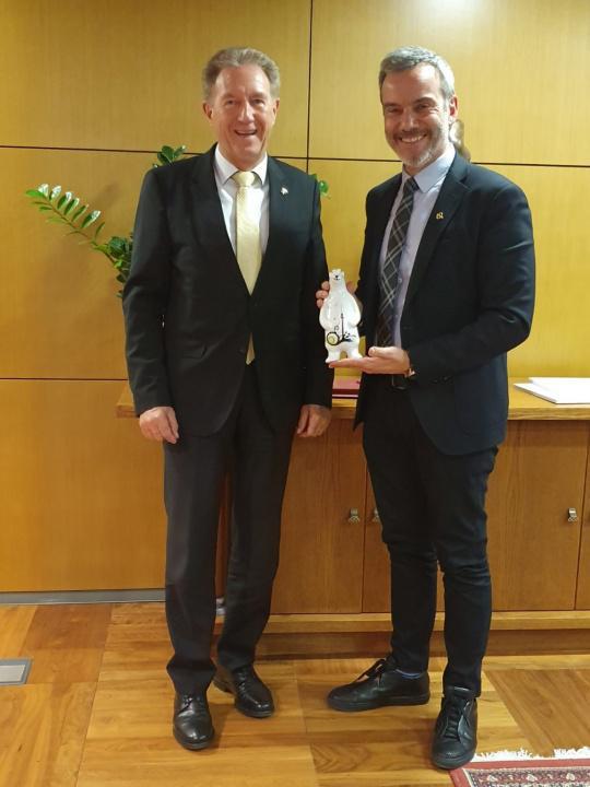 Συνάντηση εργασίας πραγματοποιήθηκε χθες, 23 Ιανουαρίου 2020, στο Δημαρχείο Θεσσαλονίκης ανάμεσα στον Δήμαρχο Κ. Ζέρβα και στον Γερμανό Υφυπουργό και εντεταλμένο της Καγκελαρίου Μέρκελ για θέματα της Ελληνογερμανικής Συνέλευσης, Νόρμπερτ Μπάρτλε.
