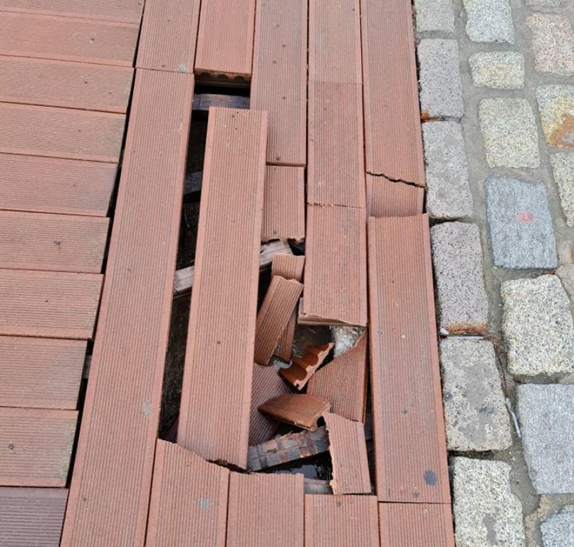 Σπασμένα και ραγισμένα δάπεδα, παρατημένα ξύλα και άλλα υλικά άφησε πίσω της η καρικατούρα του Χριστουγεννιάτικου χωριού