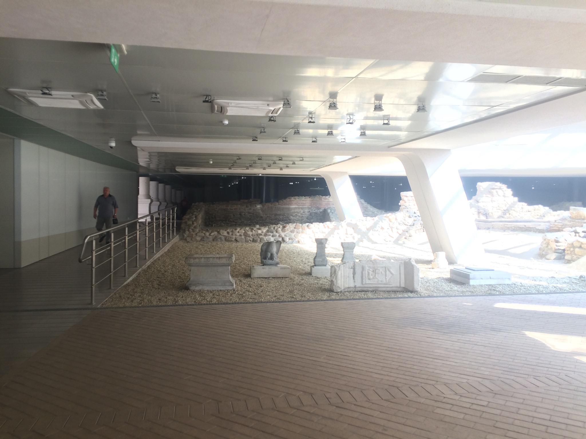 Μια σύγχρονη στάση όπου οι επιβάτες βγαίνουν μέσα από το ρωμαϊκό δρόμο, περνάνε μέσα από έναν όμορφο αρχαιολογικό χώρο ο οποίος είναι τόσο ανοικτός όσο και υπόγειος με ένα μοντέρνο στέγαστρο.