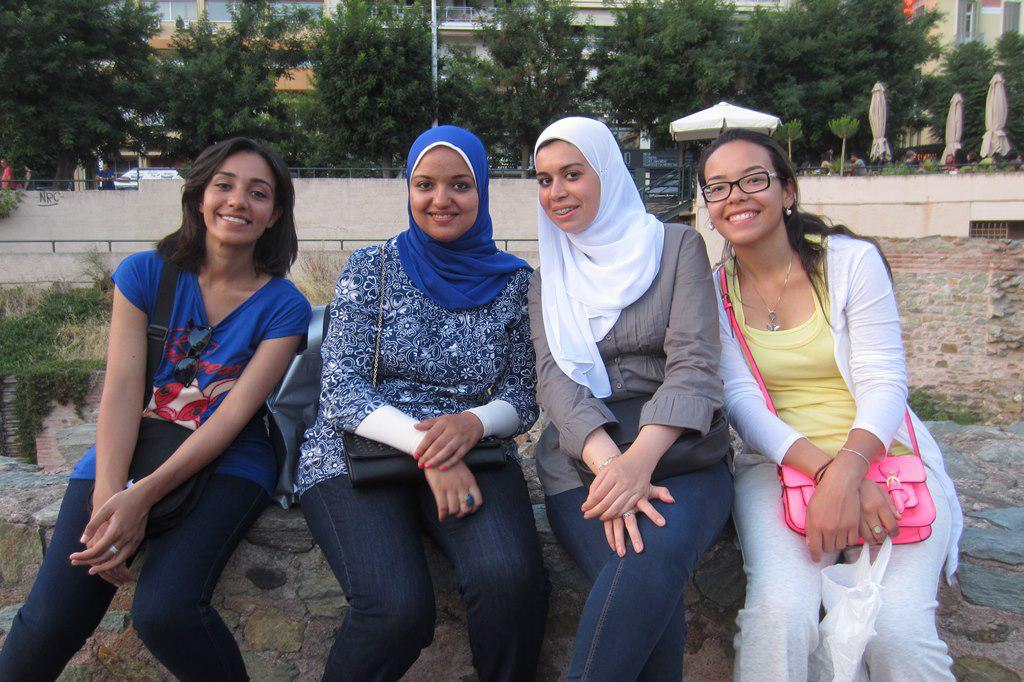Τα 4 κορίτσια είναι από την Αίγυπτο, μέρος μιας μεγαλύτερης ομάδας φοιτητών αρχιτεκτονικής στο πανεπιστήμιο του Καΐρου, οι οποίοι ήρθαν στην Ελλάδα για να παρακολουθήσουν ένα workshop που οργανώνεται στις Σέρρες από τον καθηγητή στο πανεπιστήμιο του Βόλου κ. Στυλίδη.