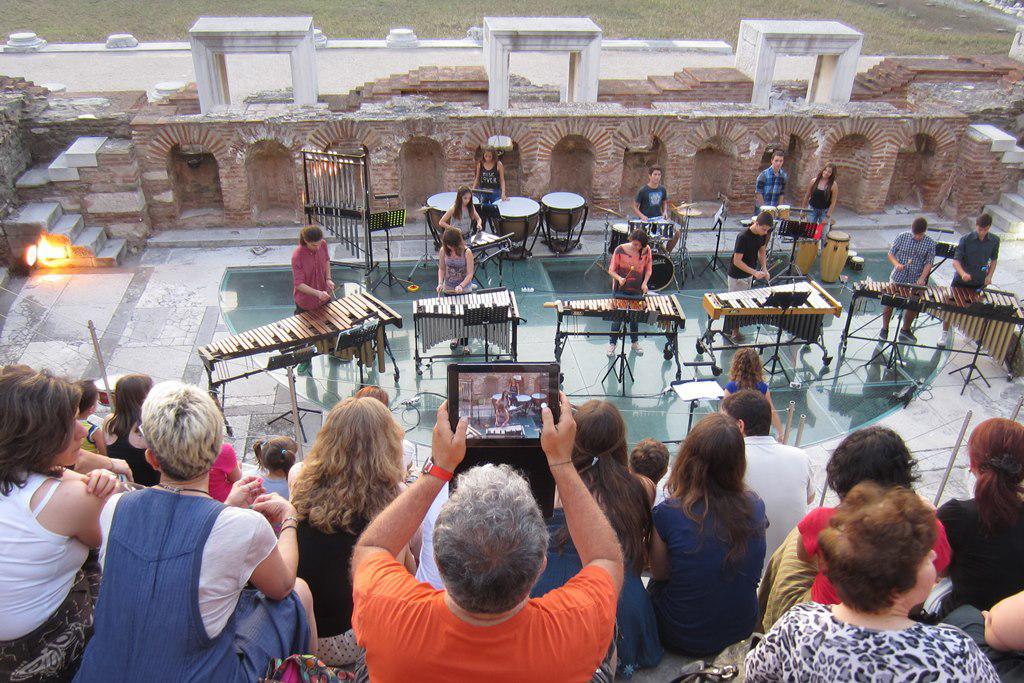 Νέοι μουσικοί, 12-20 ετών, από το τμήμα κρουστών του Νέου Ωδείου Θεσσαλονίκης και συνομίληκοί τους από το τμήμα κρουστών του Δημοτικού Ωδείου Θέρμης παρουσίασαν μια μοναδική συναυλία με διασκευές σύγχρονων κομματιών για ξυλόφωνο, τύμπανα, μαρίμπα, βιμπράφωνο, καμπάνες, ντραμς, μπόνγκος, κόνγκας και άλλα μικροκρουστά που απόλαυσαν πραγματικά όλοι όσοι είχαν την τύχη να βρεθούν εκεί, μερικοί από αυτούς τυχαία.