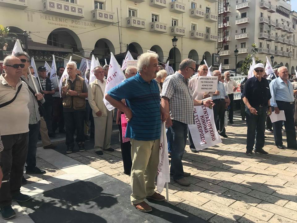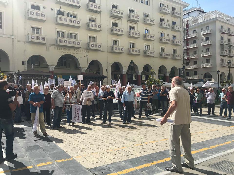 Συγκέντρωση διαμαρτυρίας πραγματοποιούν αυτή την ώρα συνταξιούχοι στο κέντρο της πόλης, στην Πλατεία Αριστοτέλους.