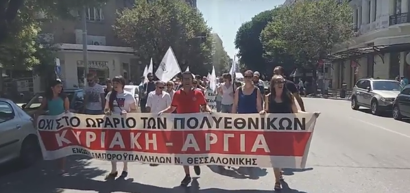 «Η σχεδιασμένη κατάργηση της Κυριακής αργίας συνοδεύεται με μεγάλες καθυστερήσεις στις καταβολές των μισθών, ρεπό που δε δίνονται, με αύξηση της εντατικοποίησης της εργασίας, με ολοένα και λιγότερους εργαζόμενους ιδιαίτερα σε μεγάλους εργασιακούς χώρους να βγάζουν πολλαπλάσια δουλειά, γεγονός που οδηγεί το τελευταίο διάστημα σε αύξηση των εργατικών ατυχημάτων και των επαγγελματικών ασθενειών» αναφέρεται σε ανακοίνωση της Ένωσης Εμποροϋπαλλήλων νομού Θεσσαλονίκης.