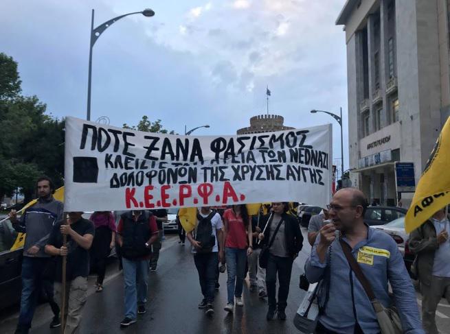 Με συνθήματα ενάντια στον φασισμό και κατά της Χρυσής Αυγής, πάνω από 300 άτομα διατρανώνουν την αντίθεσή τους σε όσα συνέβησαν το προηγούμενο Σάββατο με τη βίαιη επίθεση κατά του Δημάρχου Θεσσαλονίκης.