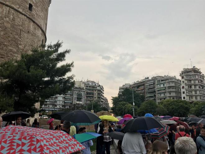 Η συγκέντρωση διαμαρτυρίας κατά της επίθεσης στον Γιάννη Μπουτάρη βρίσκεται αυτή τη στιγμή σε εξέλιξη στην περιοχή του Λευκού Πύργου. Παρά τον βροχερό καιρό, άνθρωποι όλων των ηλικιών ανταποκρίθηκαν θετικά στο κάλεσμα που οργανώθηκε μέσω του facebook προκειμένου να καταδικάσουν τη βία δίνοντας βροντερό παρών.