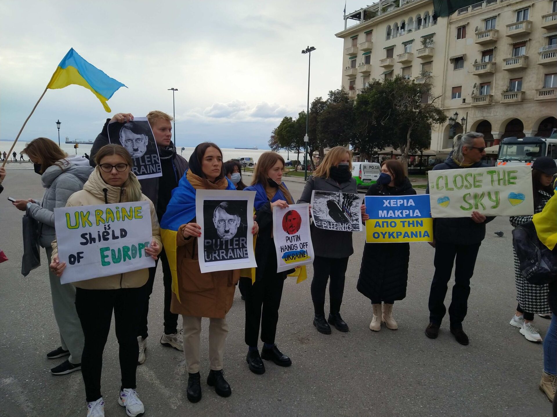 Στην πλατεία Αριστοτέλους συγκεντρώθηκαν το μεσημέρι της Δευτέρας δεκάδες Ουκρανοί που διαμένουν στη Θεσσαλονίκη.