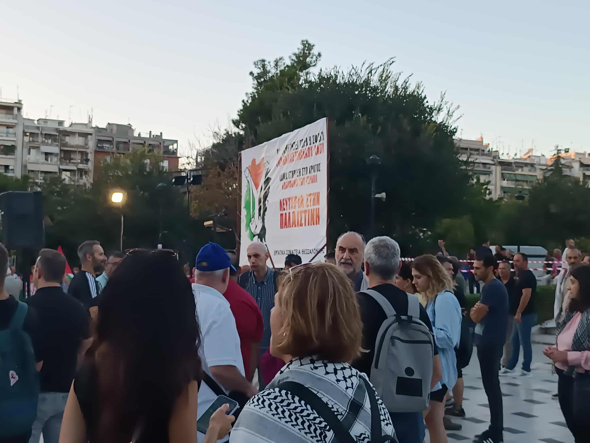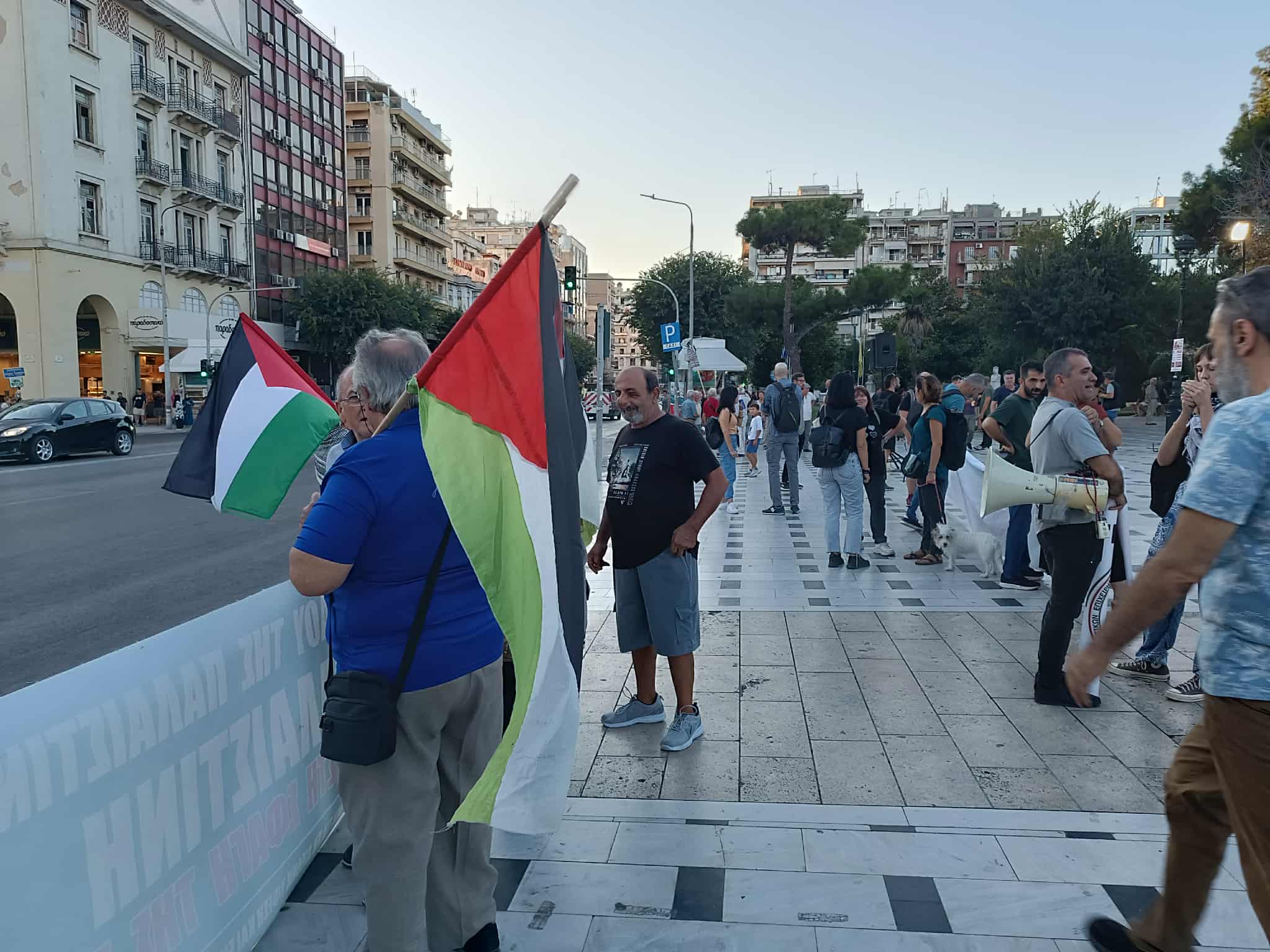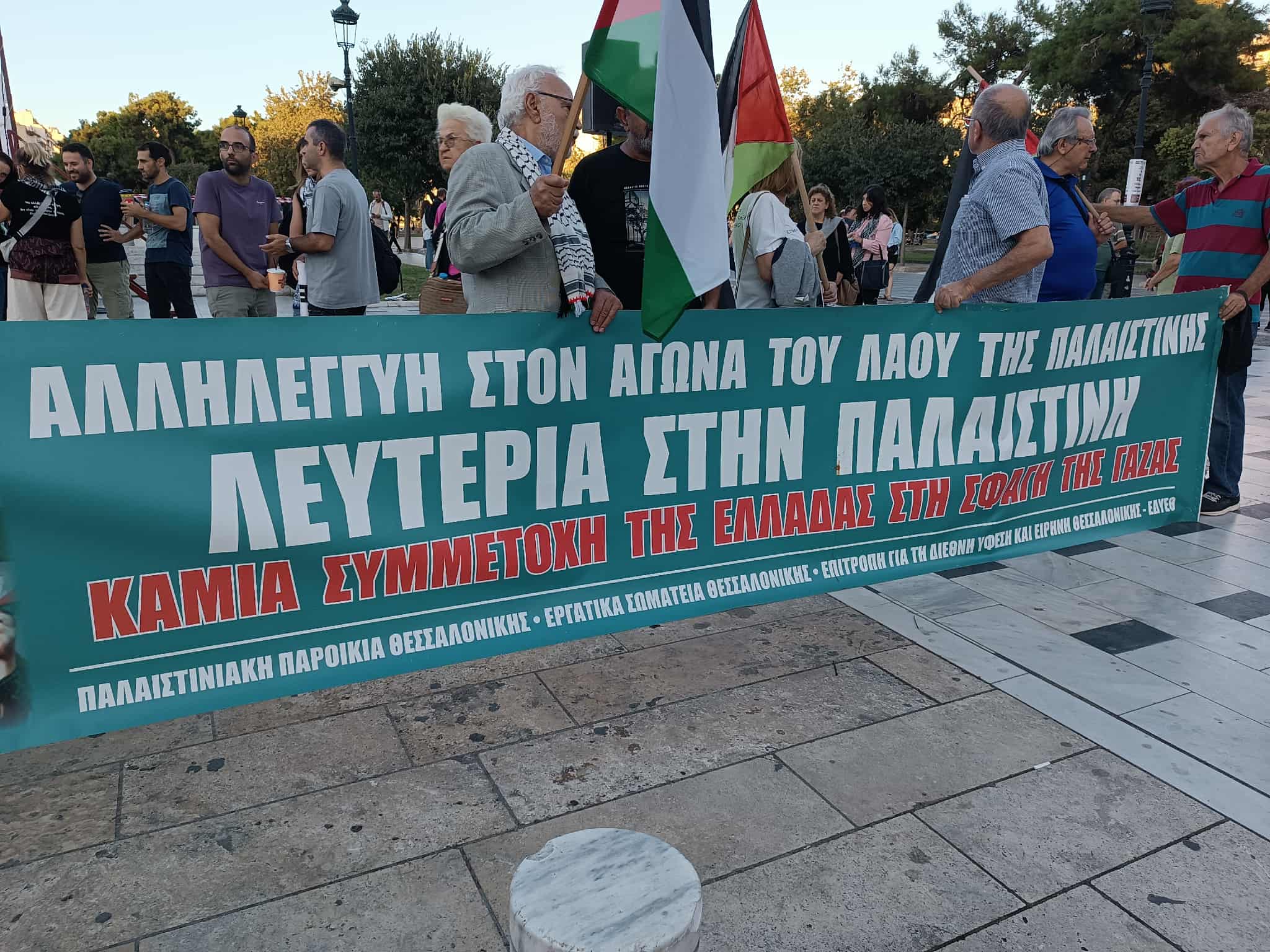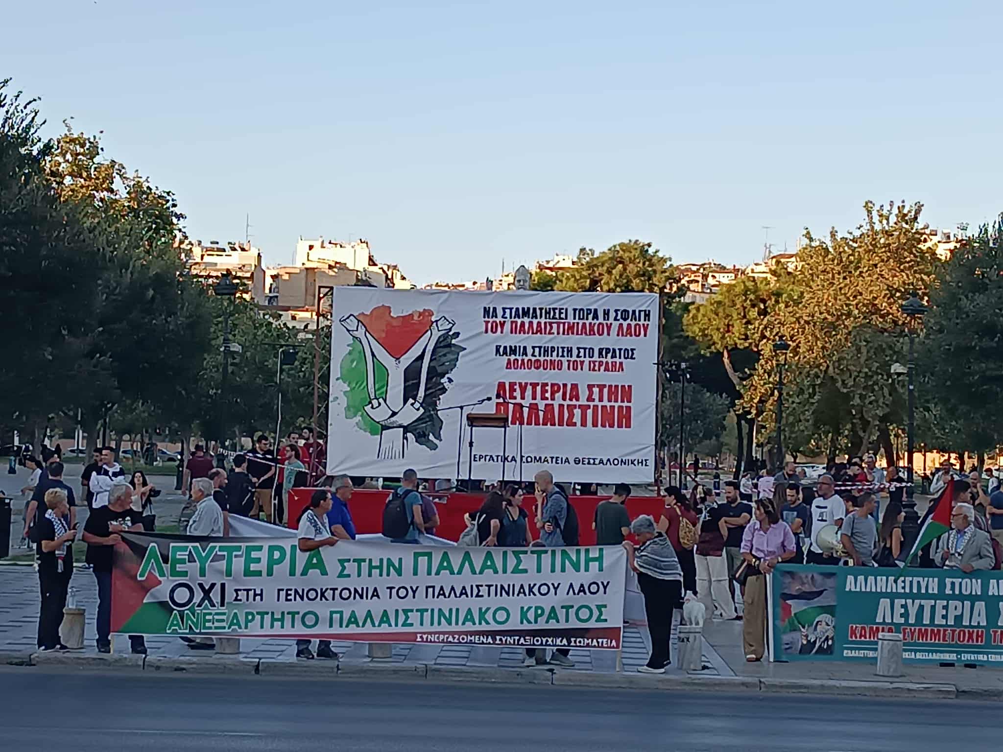 Συγκέντρωση αλληλεγγύης προς το λαό της Παλαιστίνης είναι σε εξέλιξη σήμερα το απόγευμα στη Θεσσαλονίκη, στο άγαλμα Βενιζέλου.