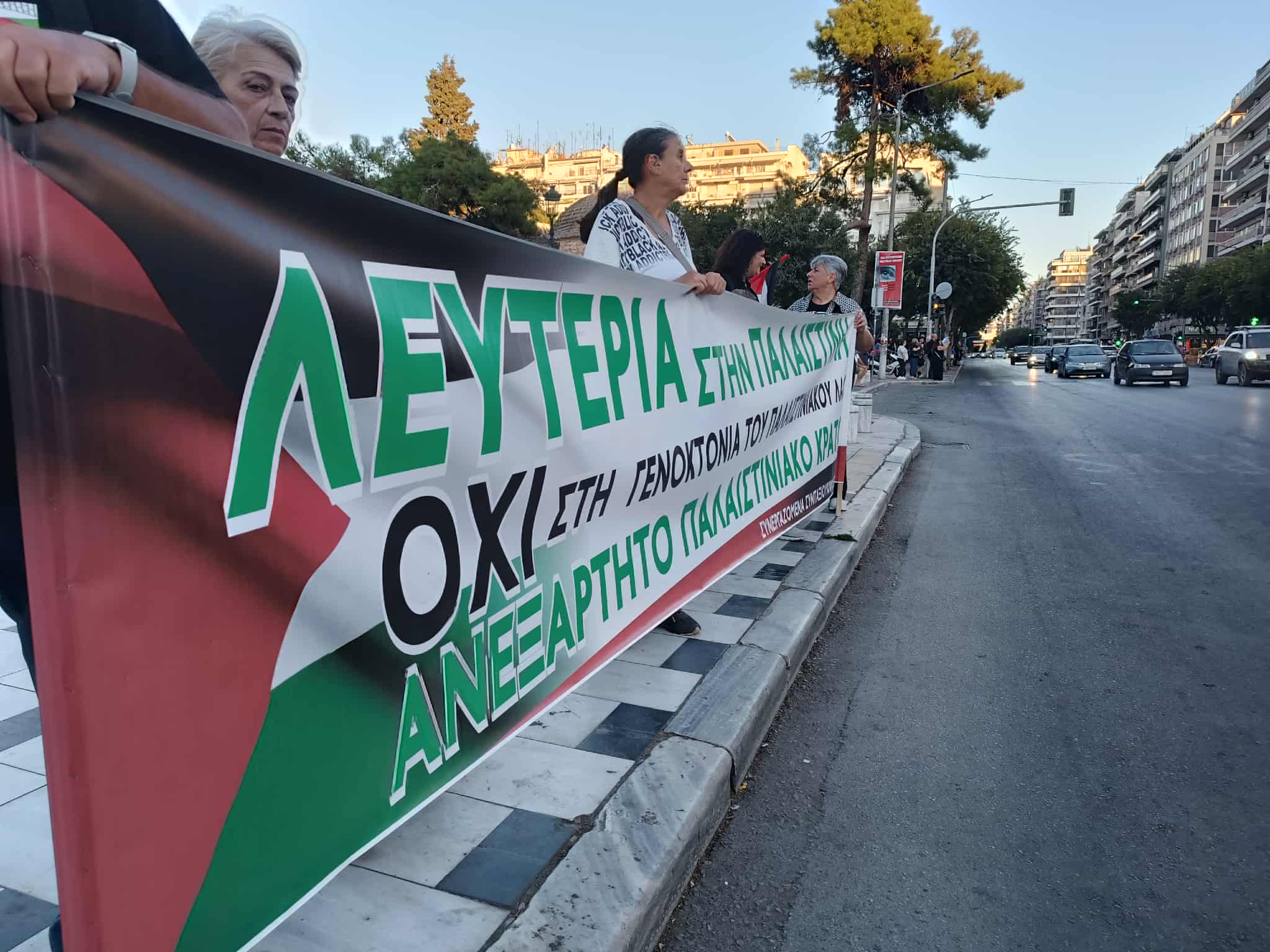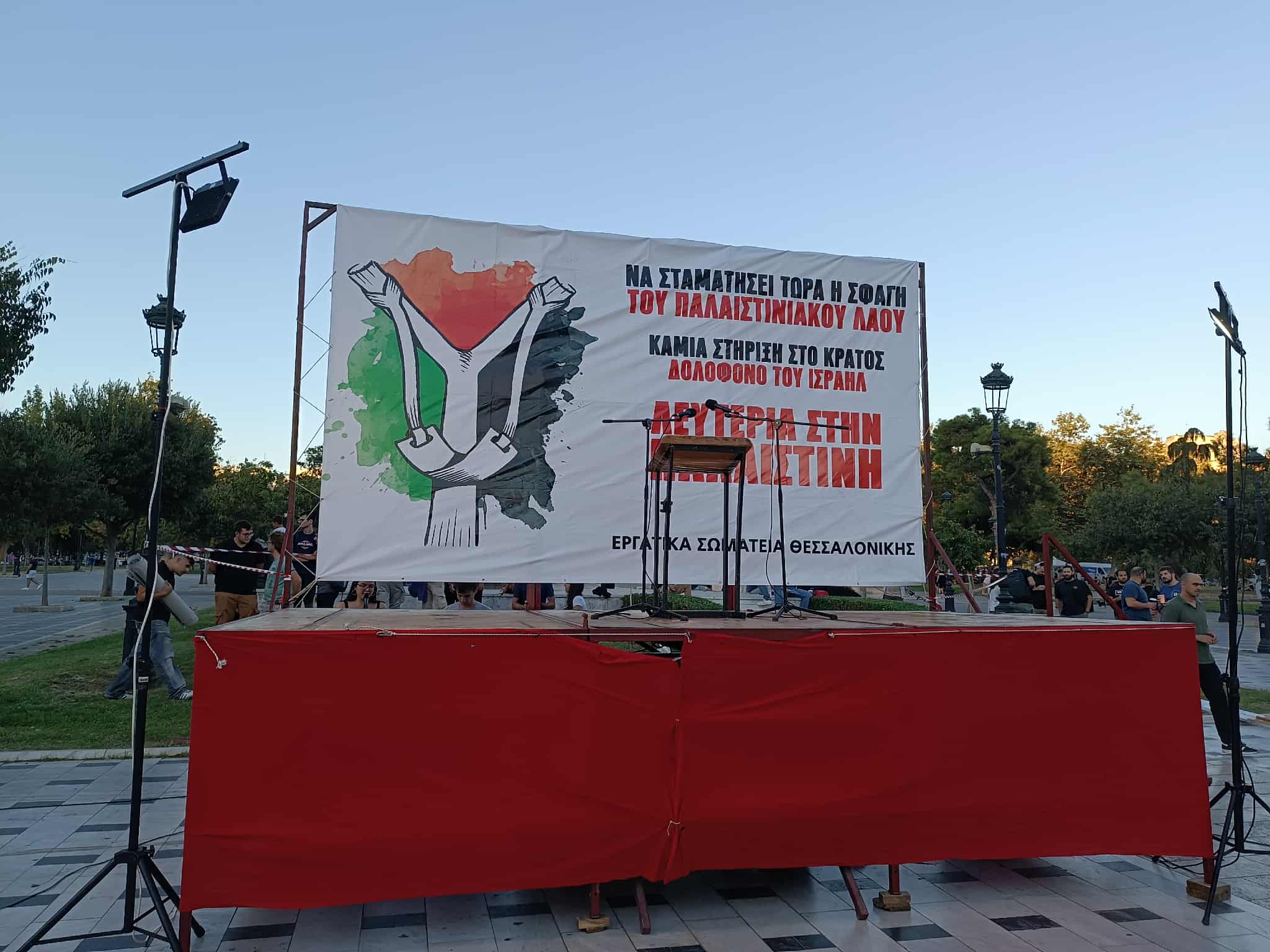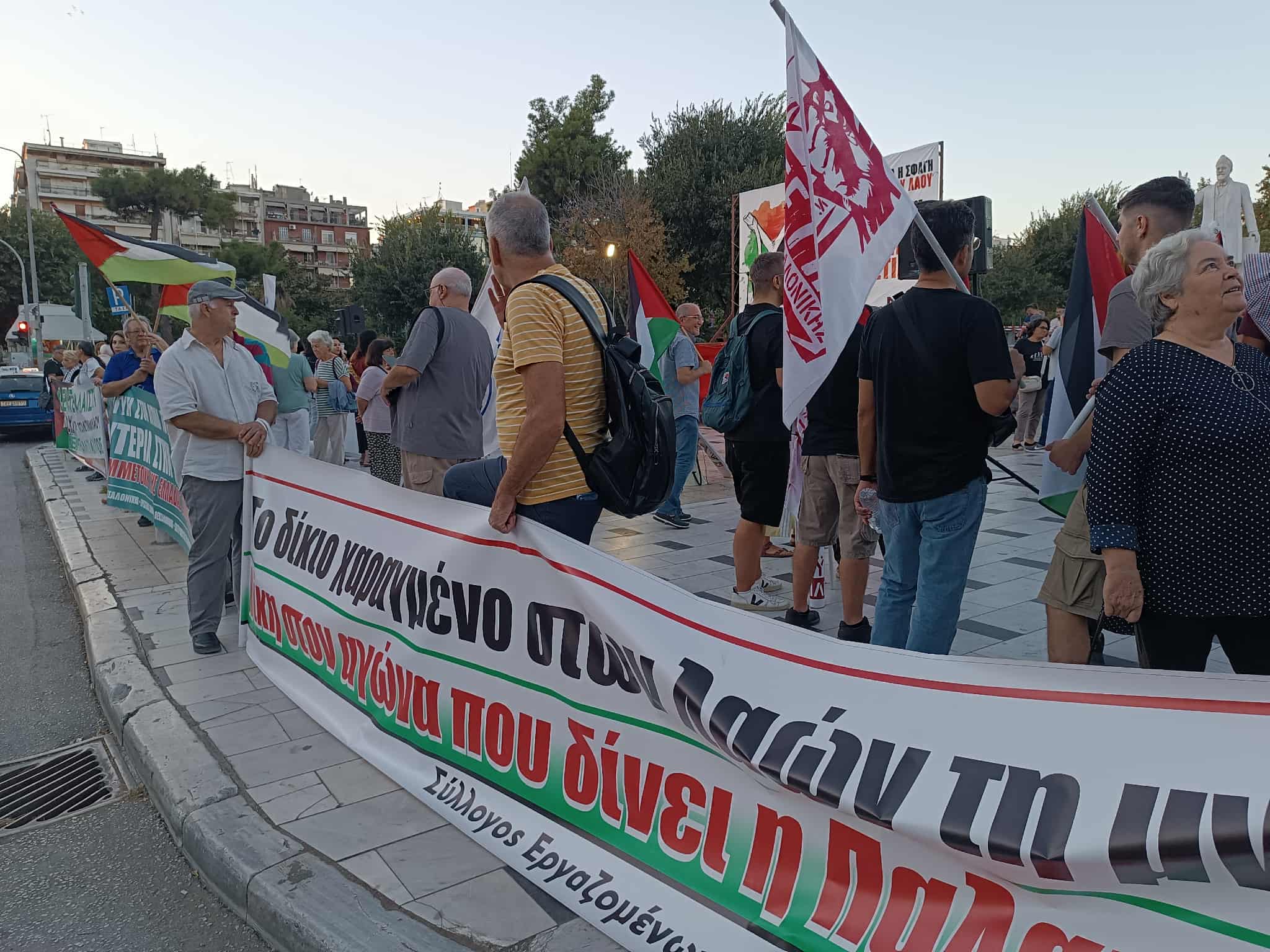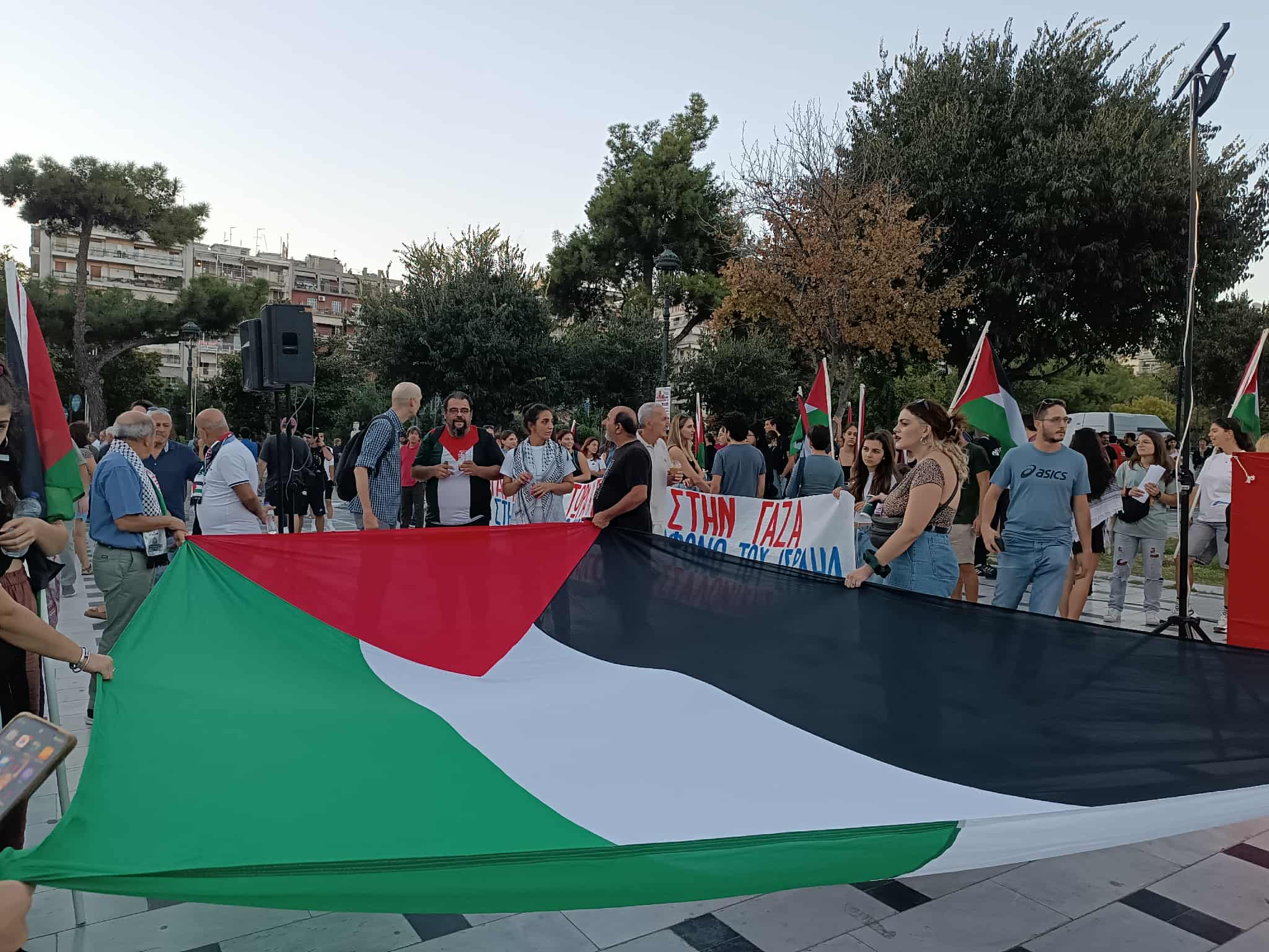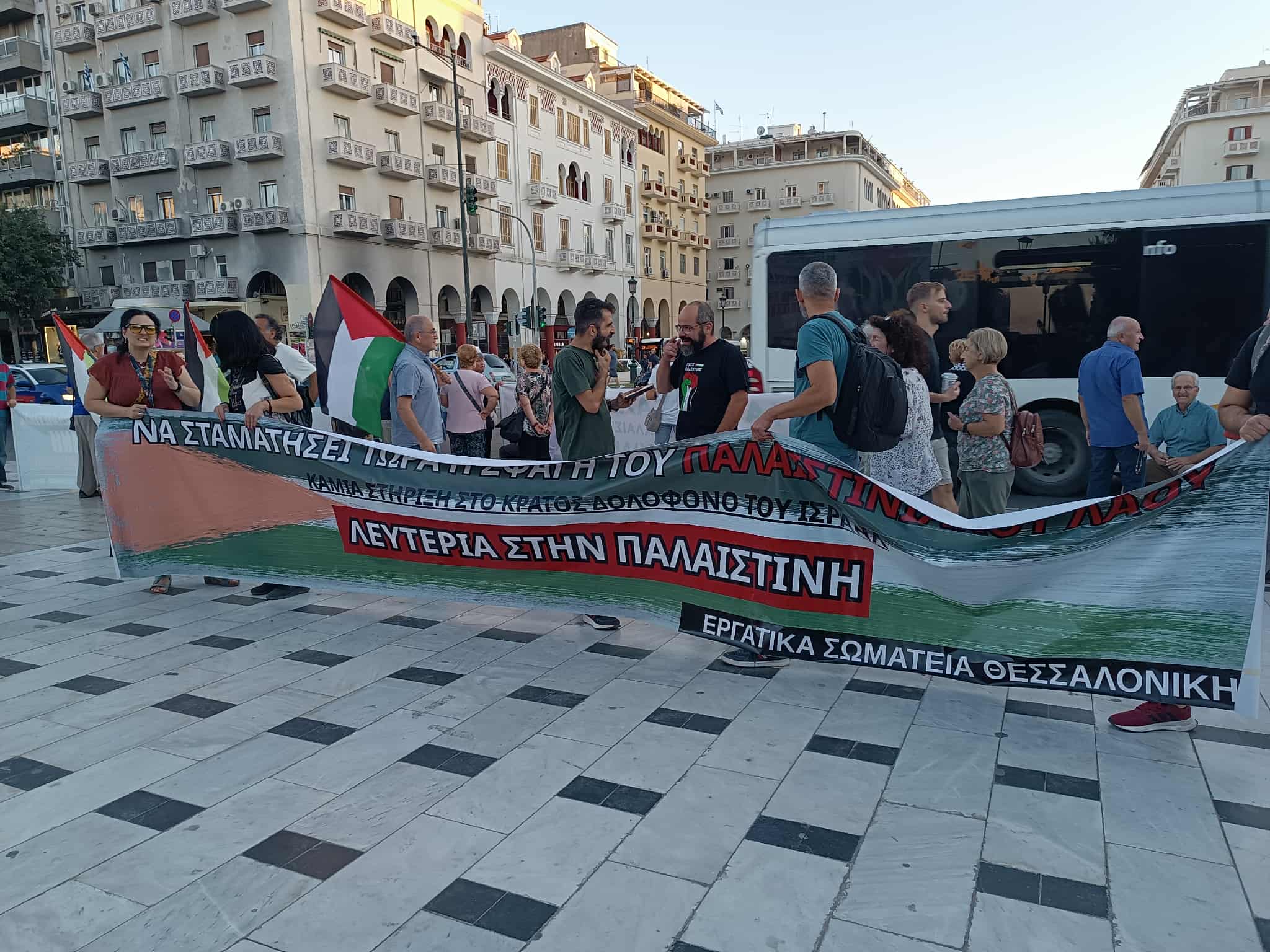 Συγκέντρωση αλληλεγγύης προς το λαό της Παλαιστίνης είναι σε εξέλιξη σήμερα το απόγευμα στη Θεσσαλονίκη, στο άγαλμα Βενιζέλου.