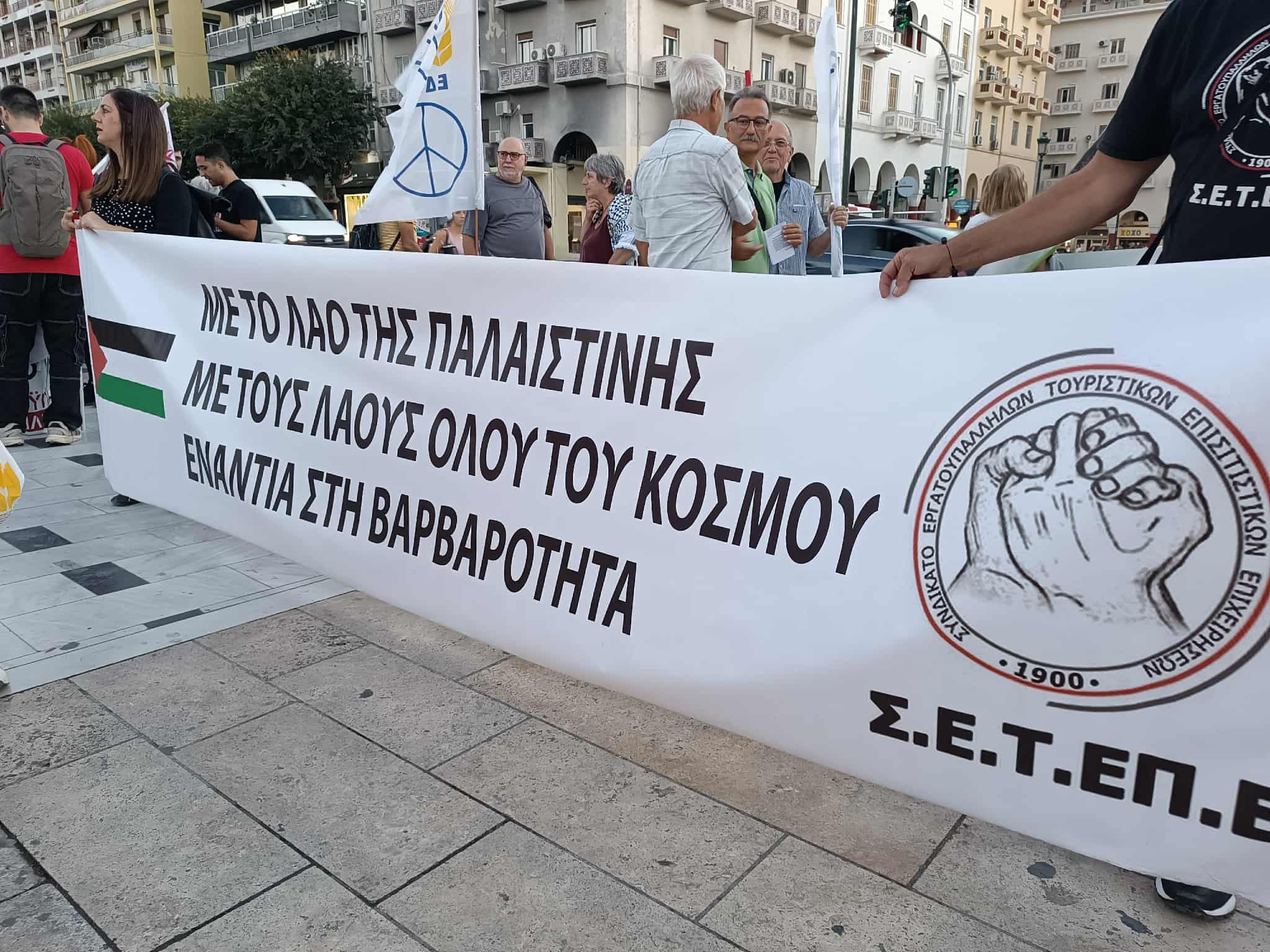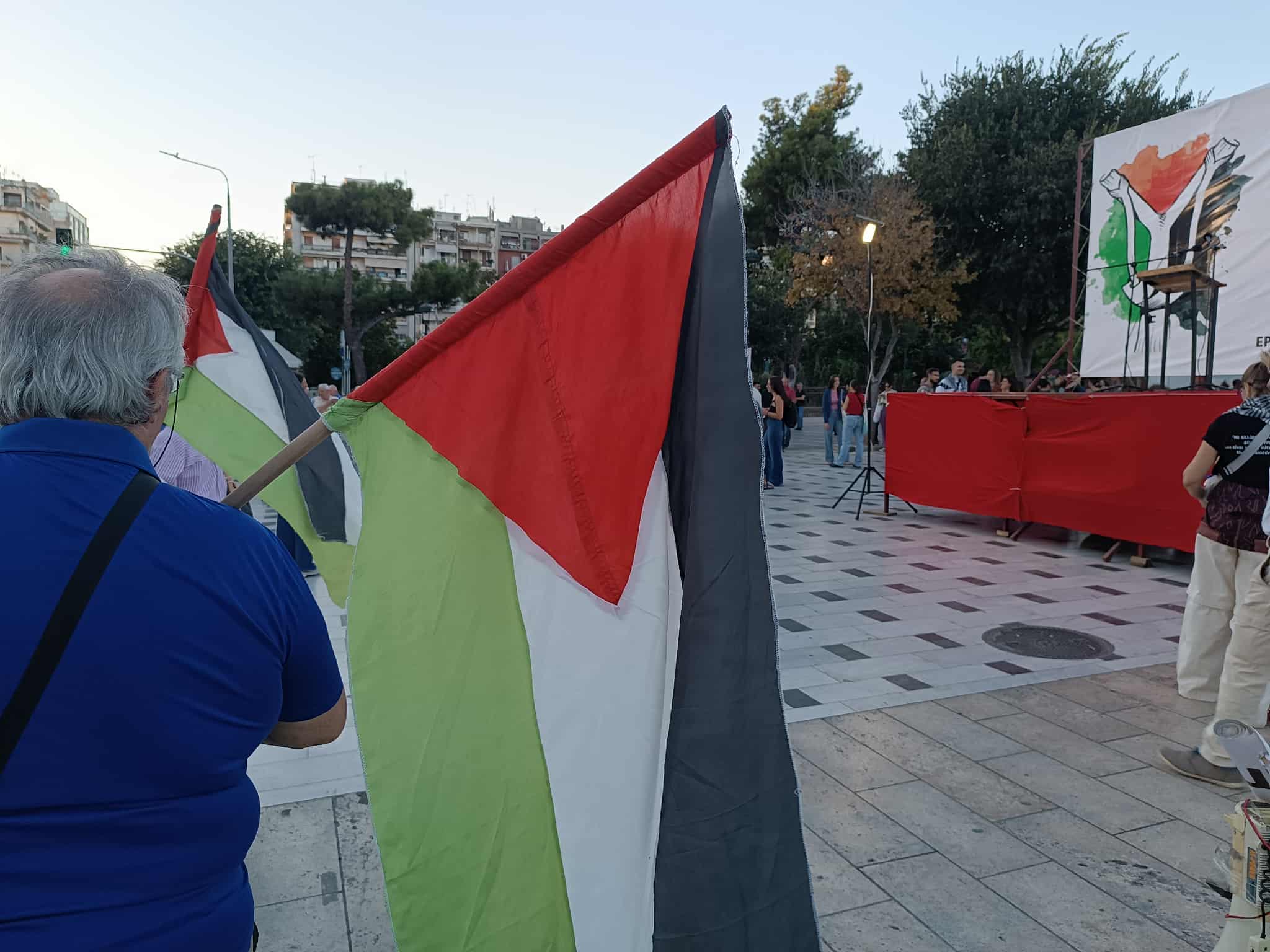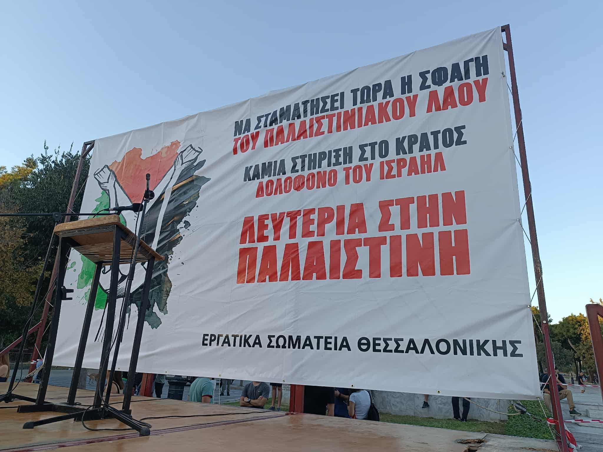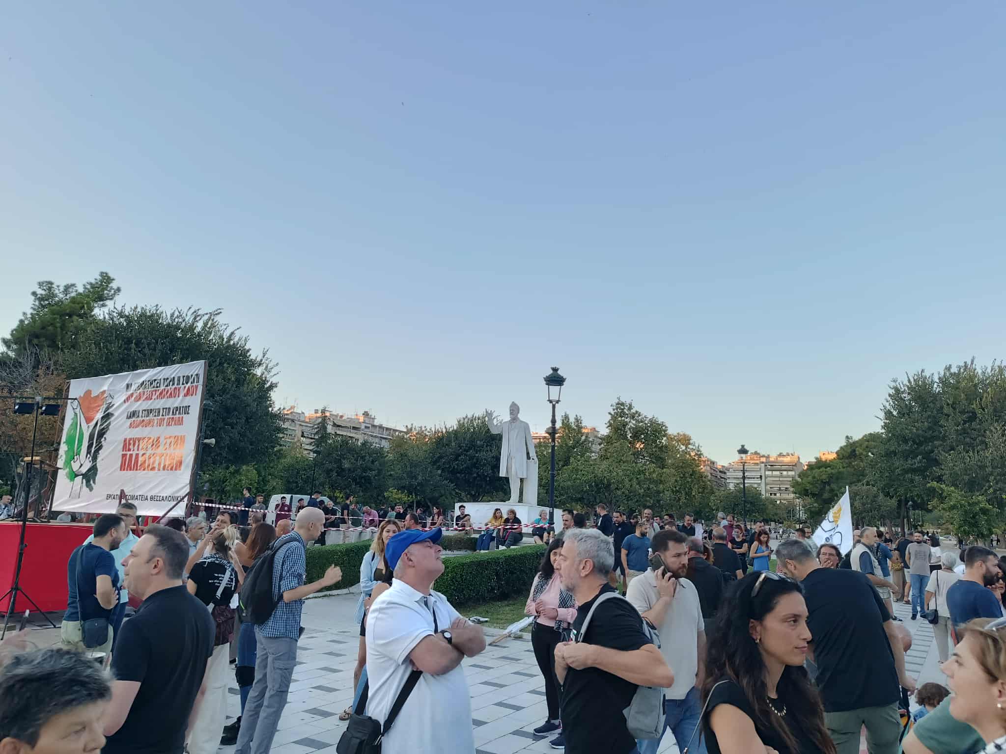 Συγκέντρωση αλληλεγγύης προς το λαό της Παλαιστίνης είναι σε εξέλιξη σήμερα το απόγευμα στη Θεσσαλονίκη, στο άγαλμα Βενιζέλου.