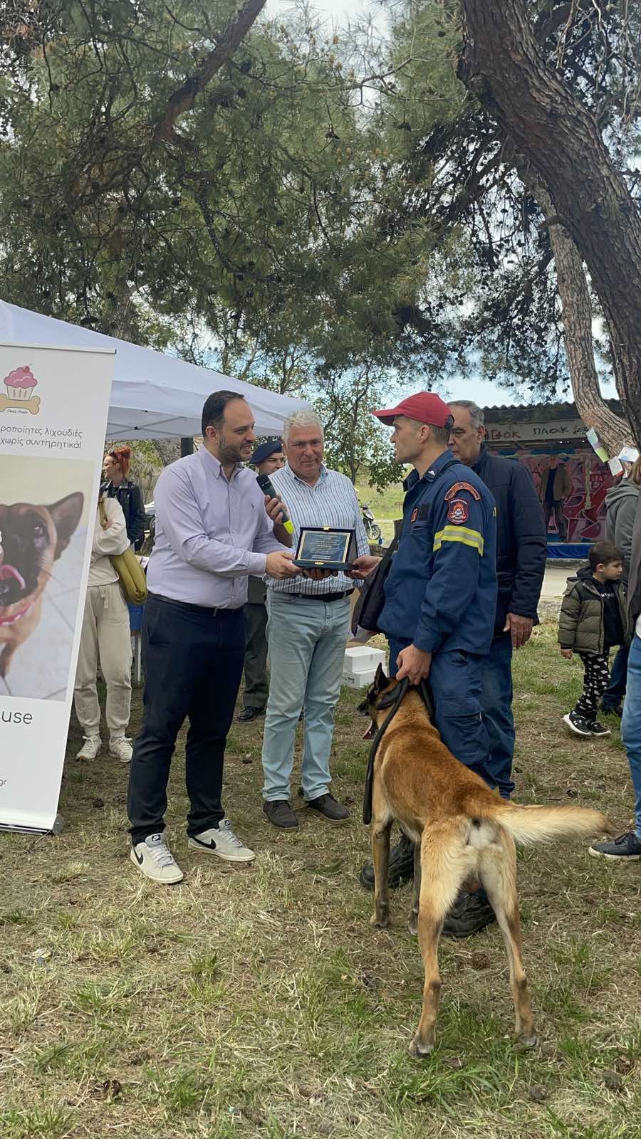 Ο Δήμαρχος Καλαμαριάς βράβευσε τον Πυρονόμο Β’ ΕΜΑΚ, Αναστάσιο Πανιώρη, μαζί με τον διασώστη σκύλο του «ΤΑΛΩ», για τη συμμετοχή τους στις επιχειρήσεις διάσωσης μετά τους σεισμούς σε Τουρκία και Συρία.