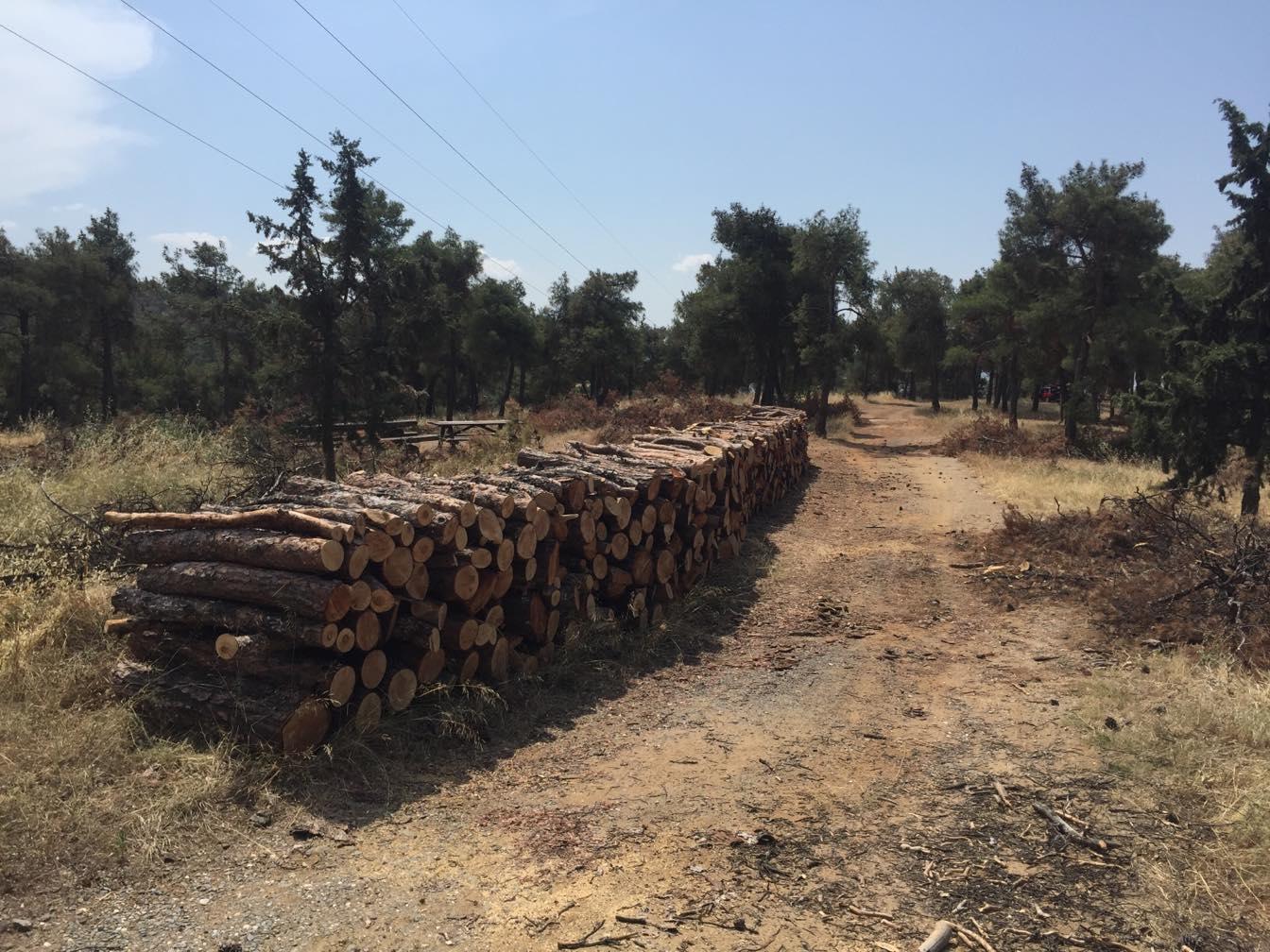 Εικόνες τραβηγμένες πριν λίγο στο δάσος του Σέιχ Σου. Η κοπή των δέντρων σε μια προσπάθεια να σταματήσει η καταστροφή του δάσους από το φλοιοφάγο έντομο.