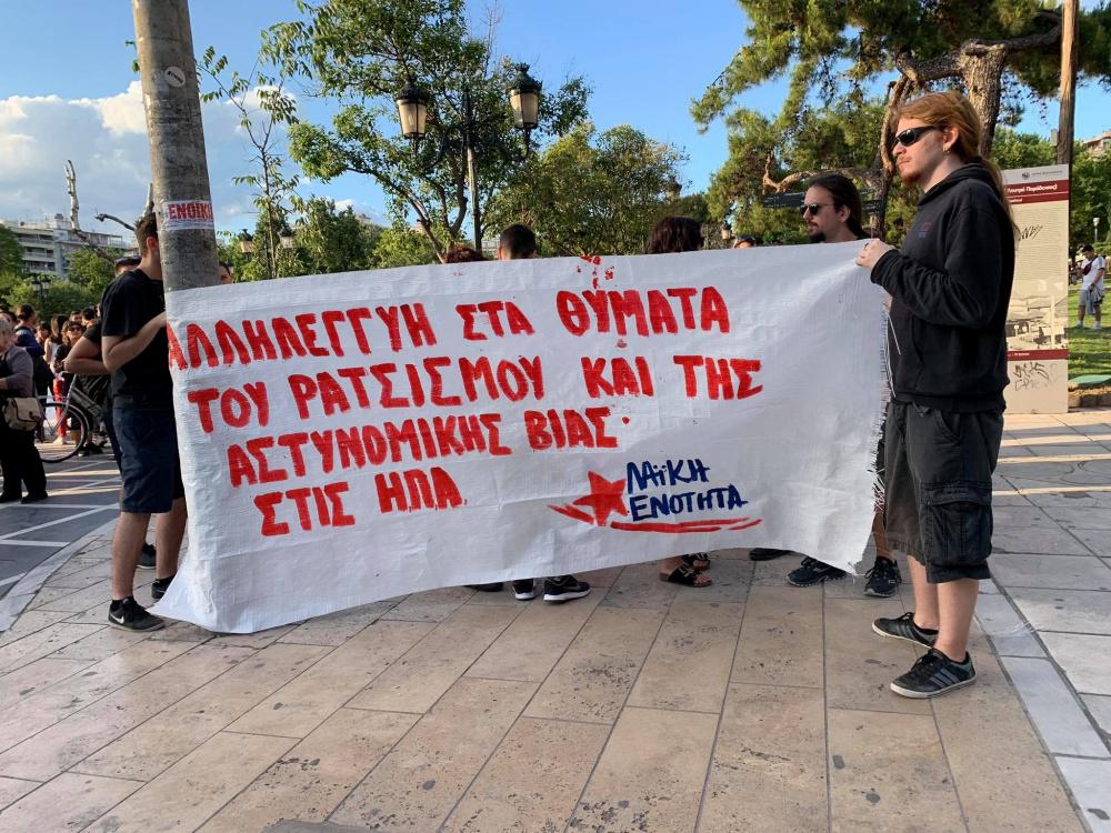 Συγκεκριμένα οι διαδηλωτές συγκεντρώθηκαν νωρίτερα στο άγαλμα του Βενιζέλου ως ένδειξη διαμαρτυρίας για τα γεγονότα στις Ηνωμένες Πολιτείες με αφορμή τη δολοφονία του Τζόρτζ Φλόιντ.