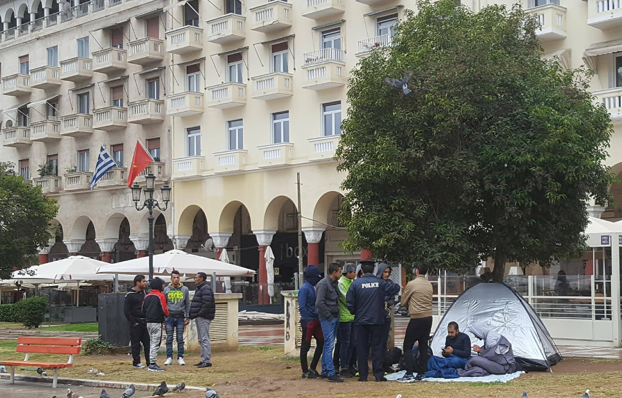 Σύμφωνα με πληροφορίες της parallaxi, ομάδα 15 ατόμων πιθανώς προσφύγων ή μεταναστών έστησαν την σκηνή τους σήμερα στην πλατεία Αριστοτέλους ως ένδειξη διαμαρτυρίας καθώς επιθυμούν να φύγουν από την Ελλάδα και δεν μπορούν.