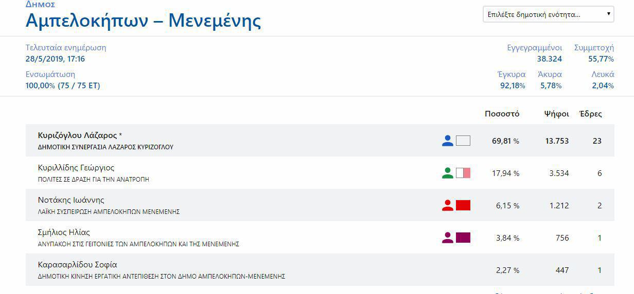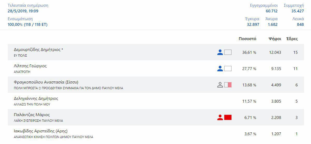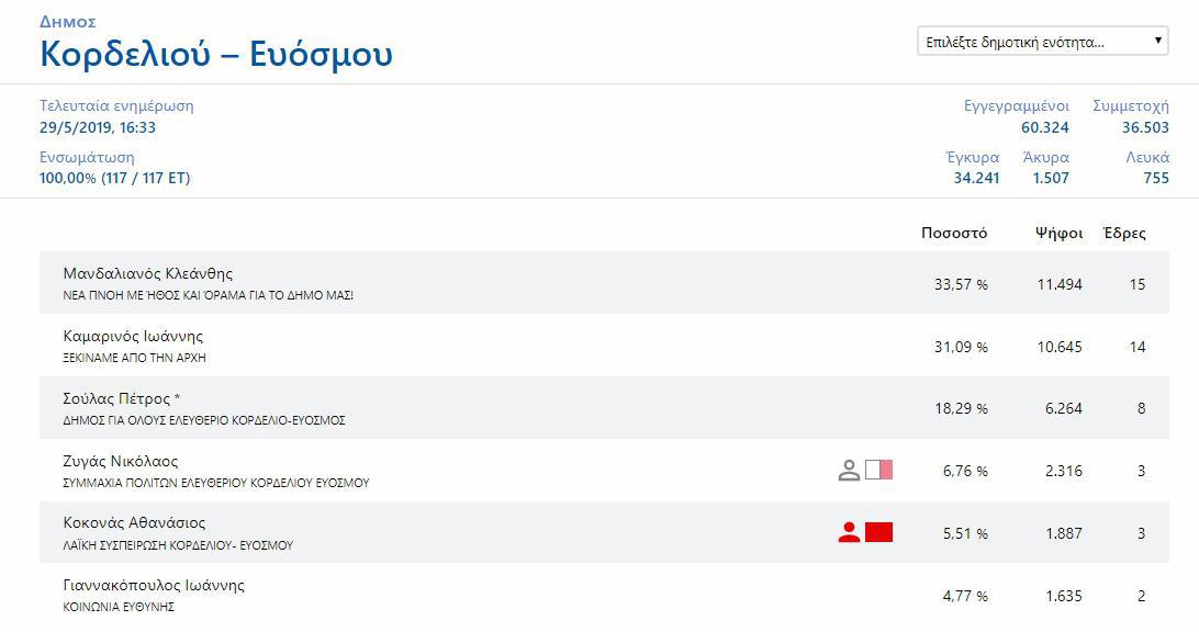 ΣΥΝΕΧΗΣ ΕΝΗΜΕΡΩΣΗ: Τα τελικά αποτελέσματα στους δήμους της Θεσσαλονίκης