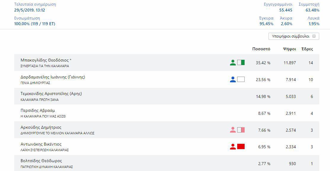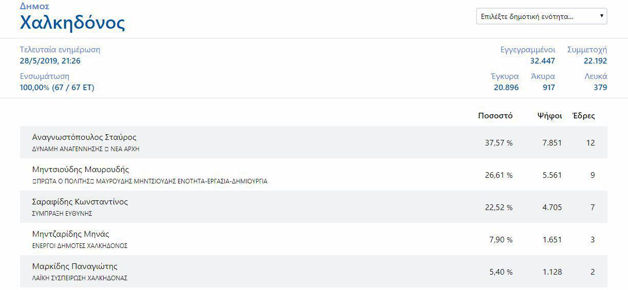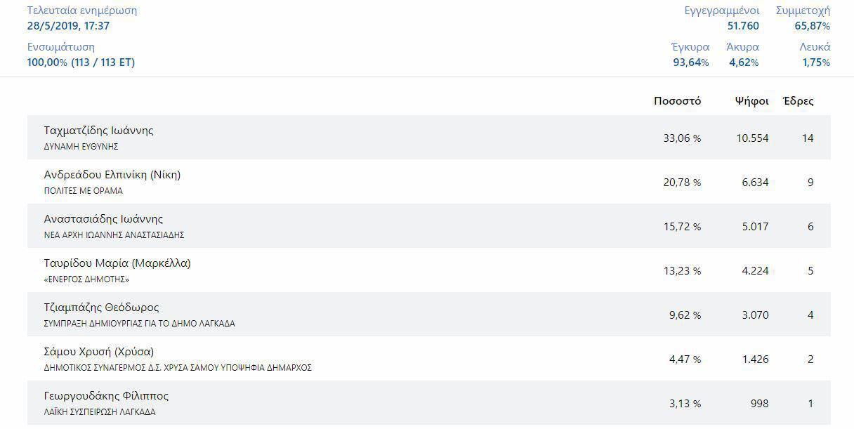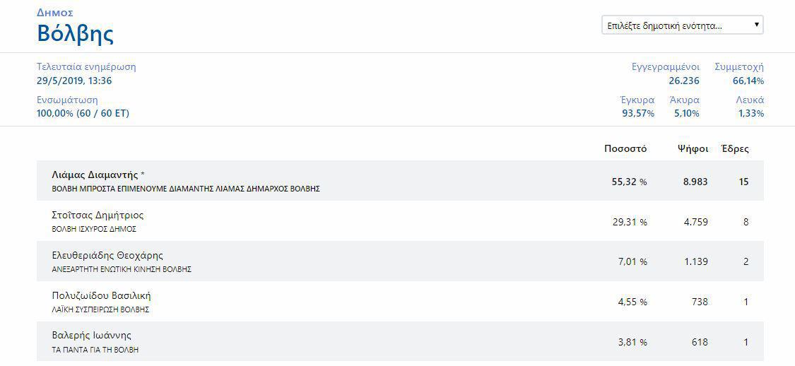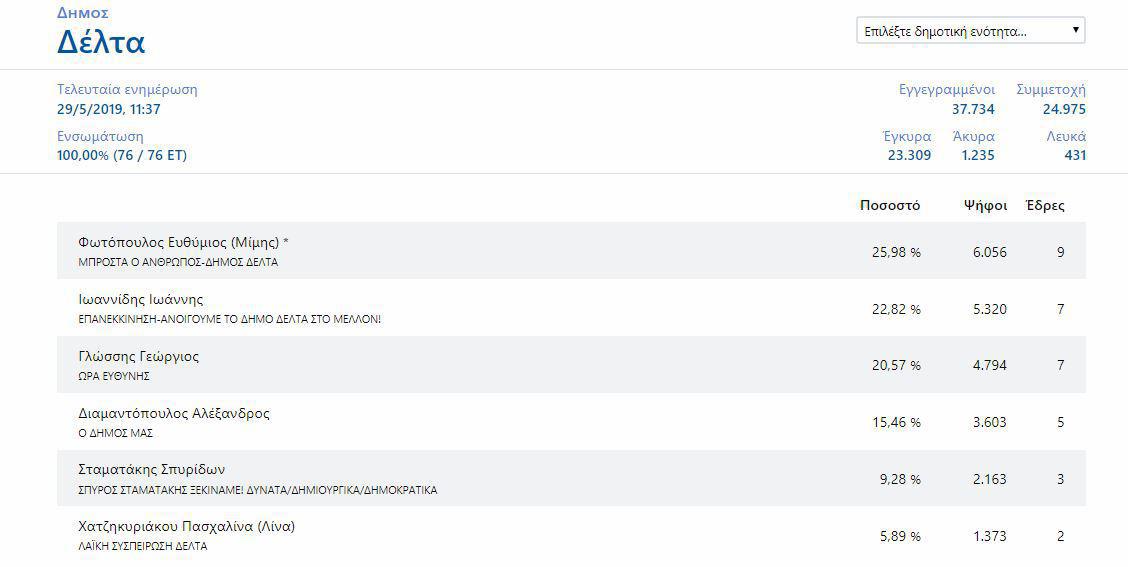 Δείτε σε ποιους δήμους έχουμε 100% αποτέλεσμα.