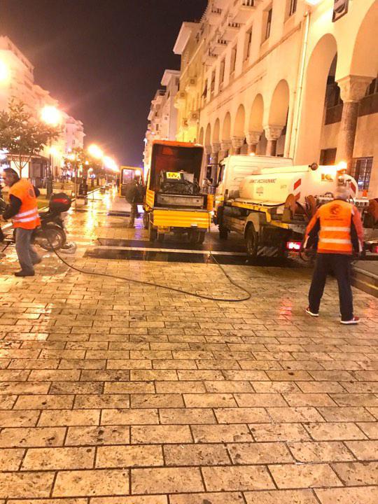 Συνεχίζονται οι προγραμματισμένες δράσεις του τμήματος Καθαριότητας του Δήμου Θεσσαλονίκης, καθώς στην Α’ Κοινότητα, χθες Δευτέρα 13 Ιανουαρίου, πραγματοποιήθηκε καθαρισμός τμήματος του άξονα της Αριστοτέλους, από τις 23.00 μέχρι τις 3.00 το πρωί της επόμενης.