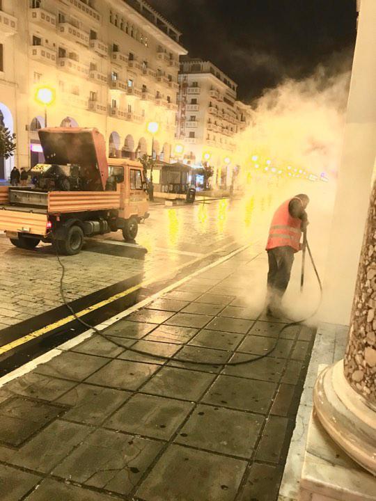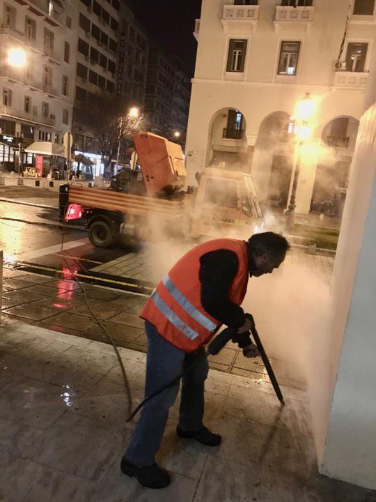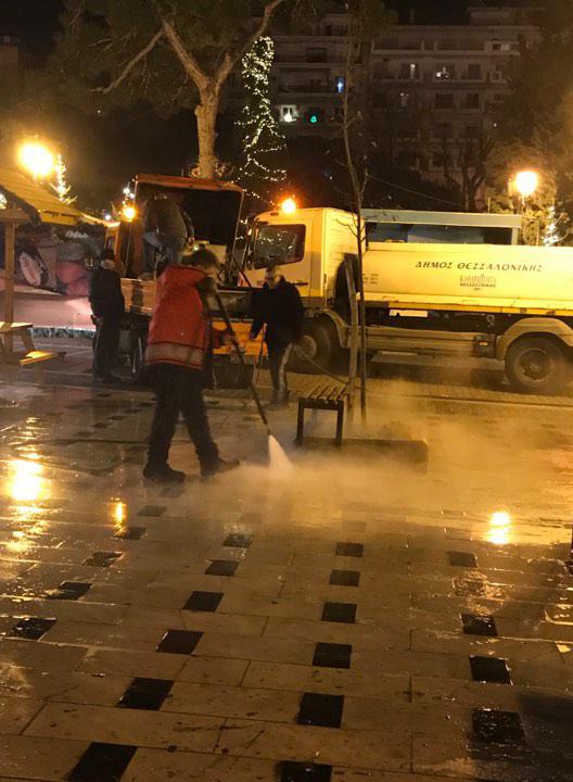 Παράλληλα, πριν λίγες ημέρες, η ίδια δράση έλαβε χώρα εντός του χριστουγεννιάτικου χωριού και θα συνεχιστεί σήμερα και τις επόμενες ημέρες σε όλον τον άξονα και μέχρι την Πλατεία Αριστοτέλους. Το αμέσως επόμενο διάστημα, τα συνεργεία καθαρισμού θα αναλάβουν δράση στην οδό Δημητρίου Γούναρη.