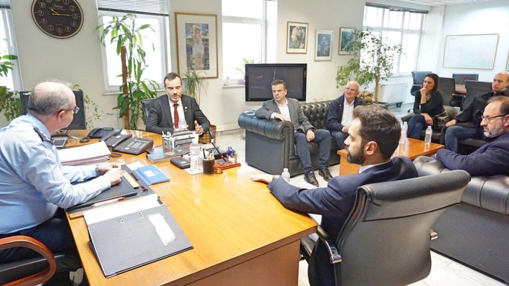 Επισκέφτηκαν το Αστυνομικό Μέγαρο όπου και συναντήθηκαν με τον Γενικό Αστυνομικό Διευθυντή Θεσσαλονίκης υποστράτηγο κ. Φ. Δομζαρίδη και ακολούθως διαδοχικά με τους κ. Λ. Μαυρόπουλο, διευθυντή Διεύθυνσης Αστυνομίας, Δ. Δούβαλη, υποδιευθυντή Διεύθυνσης Ασφαλείας, Α. Τζιτζή, διευθυντή Διεύθυνση Άμεσης Δράσης, Α. Ποτούλη, διοικητή τμήματος πεζών περιπολιών. Στο επίκεντρο των συναντήσεων τέθηκαν όλα τα ζητήματα που αφορούν στην πόλη και σχετίζονται με την ασφάλεια και τις απαραίτητες κυκλοφορικές ρυθμίσεις ώστε να καταστεί ασφαλής και λειτουργική.