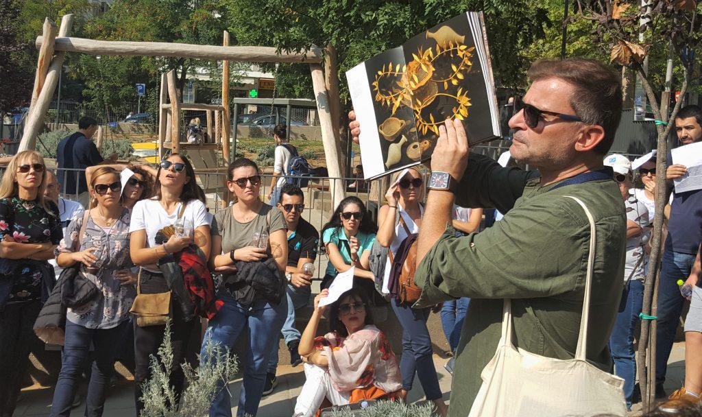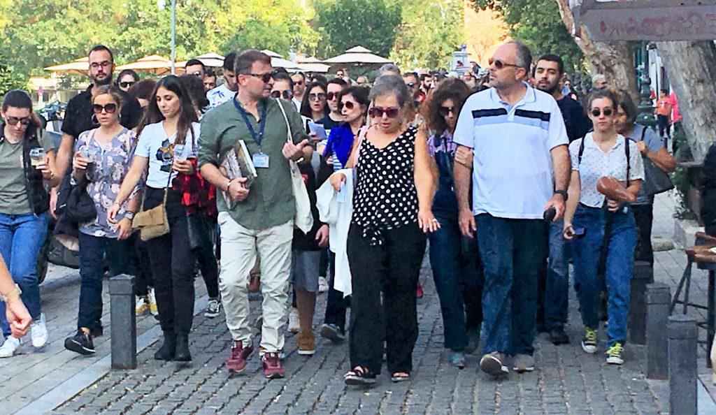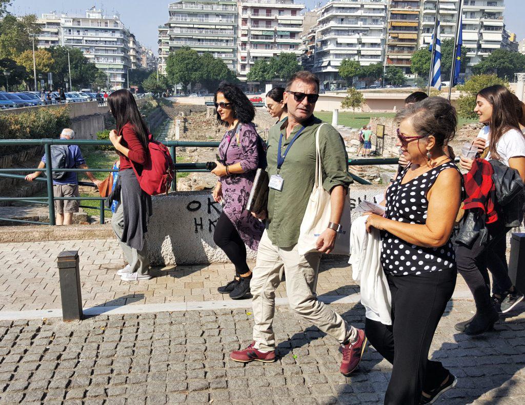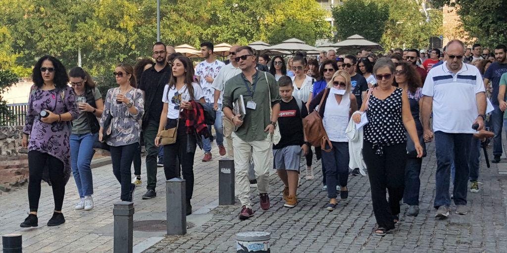 Πολίτες διαφόρων ηλικιών, συνοδεύοντας σε αρκετές περιπτώσεις τα παιδιά τους, συναντήθηκαν στις 10.30 π.μ. και στις 12.30 μ. στο άνω τμήμα της Αρχαίας Αγοράς. Μέσω των οδών Αγνώστου Στρατιώτου και Φιλίππου κατευθύνθηκαν στο σταθμό μετρό της Αγίας Σοφίας. Ακολούθως, διερχόμενοι από τα Λουτρά Παράδεισος (Bey Hamam) και την Παναγία Χαλκέων, περπάτησαν έως το σταθμό μετρό της Βενιζέλου. Επί σχεδόν δύο ώρες κάθε φορά, είχαν την ευκαιρία να ενημερωθούν και να στρέψουν την προσοχή τους σε σημεία ιστορικού και αρχαιολογικού ενδιαφέροντος που προσπερνούν στην καθημερινότητά τους, χωρίς να δίνουν ιδιαίτερη σημασία, όπως η υπόγεια ρωμαϊκή εξέδρα που βρίσκεται μπροστά από τα Λουτρά Παράδεισος.