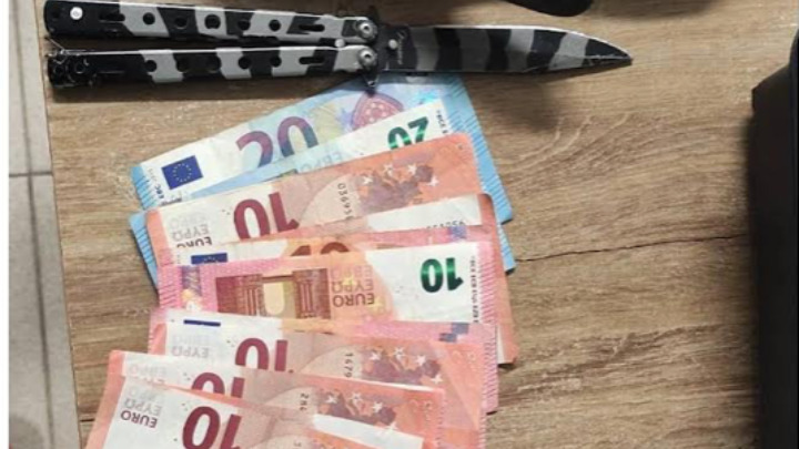 Στην κατοχή του νεαρού βρέθηκε το αφαιρεθέν χρηματικό ποσό, το οποίο αποδόθηκε στον υπεύθυνο του καταστήματος, 1 μαχαίρι τύπου πεταλούδα, 1 κουκούλα full face και 1 ζευγάρι γάντια.