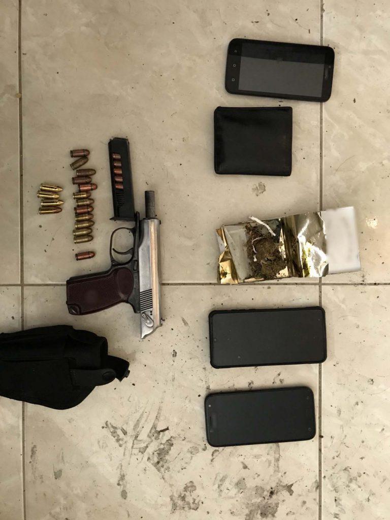 Σε έρευνες που πραγματοποιήθηκαν στην οικία του στην περιοχή του Τριλόφου και σε ενοικιαζόμενο δωμάτιο στην περιοχή της Περαίας, βρέθηκαν και κατασχέθηκαν: 1 πιστόλι, 24 φυσίγγια και Ποσότητα κάνναβης.