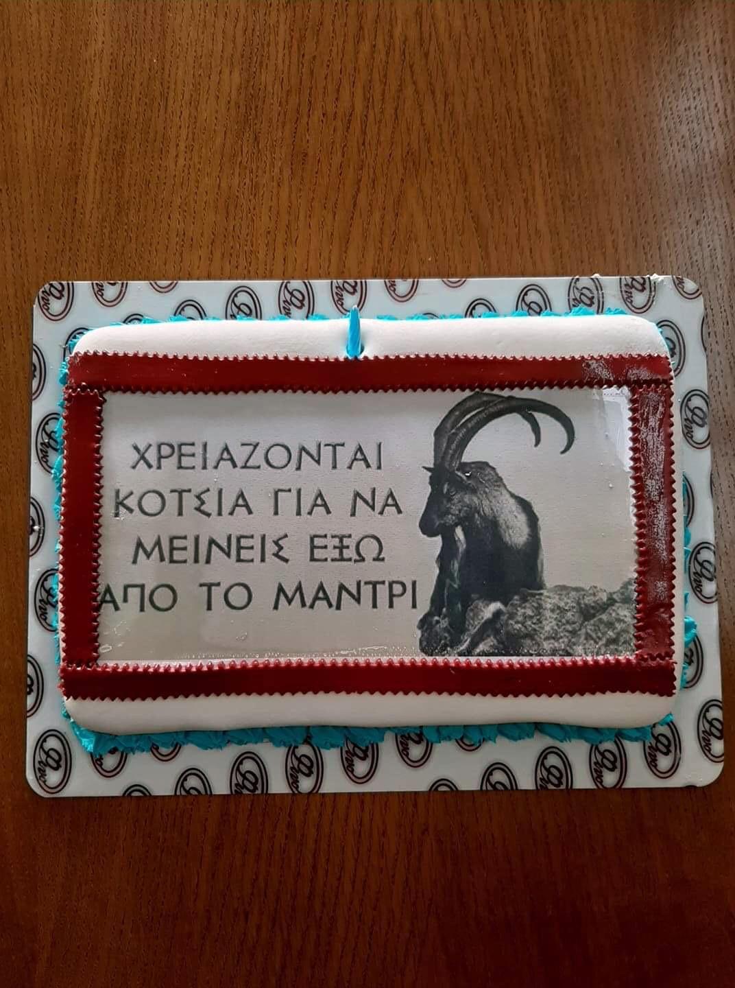 Μάλιστα, οι συνεργάτες του τού επεφύλαξαν μια έκπληξη, καθώς του ευχήθηκαν “χρόνια πολλά” με μια τούρτα που απεικόνιζε έναν τράγο και έγραφε: “Χρειάζονται κότσια για να μείνεις έξω από το μαντρί”.