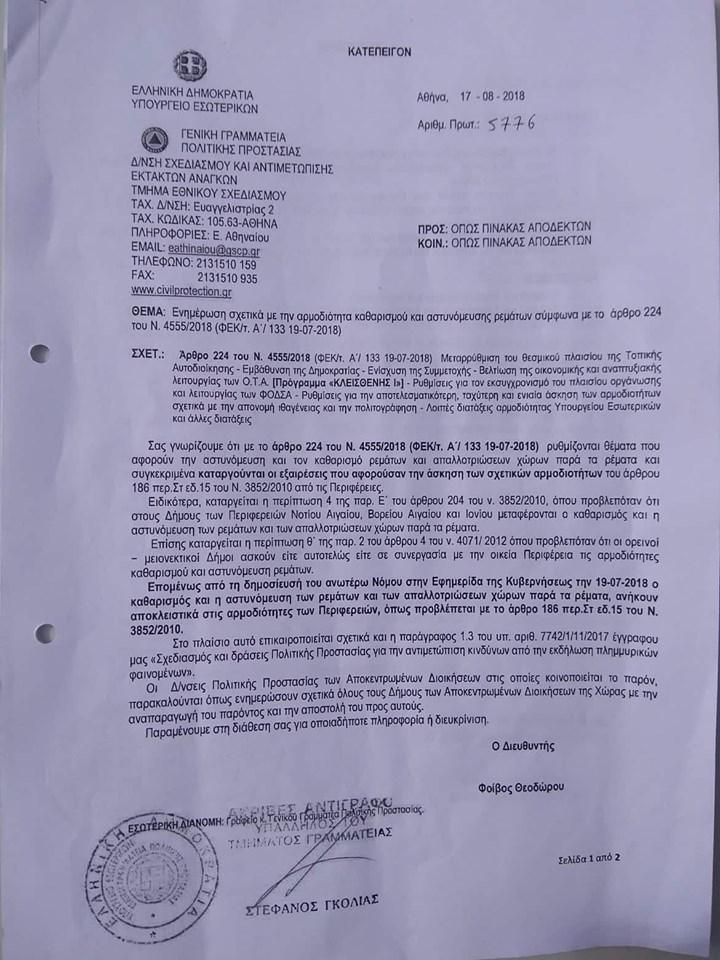 Παράλληλα από το 2015 ενημερώνει τις αρμόδιες υπηρεσίες του Υπουργείου Υποδομών και της Περιφέρειας Κ.Μ. για την αναγκαιότητα των έργων καθαρισμού των ρεμάτων και της αντιπλημμυρικής θωράκισής τους για την καλύτερη ασφάλεια των πολιτών και της περιουσίας τους.
