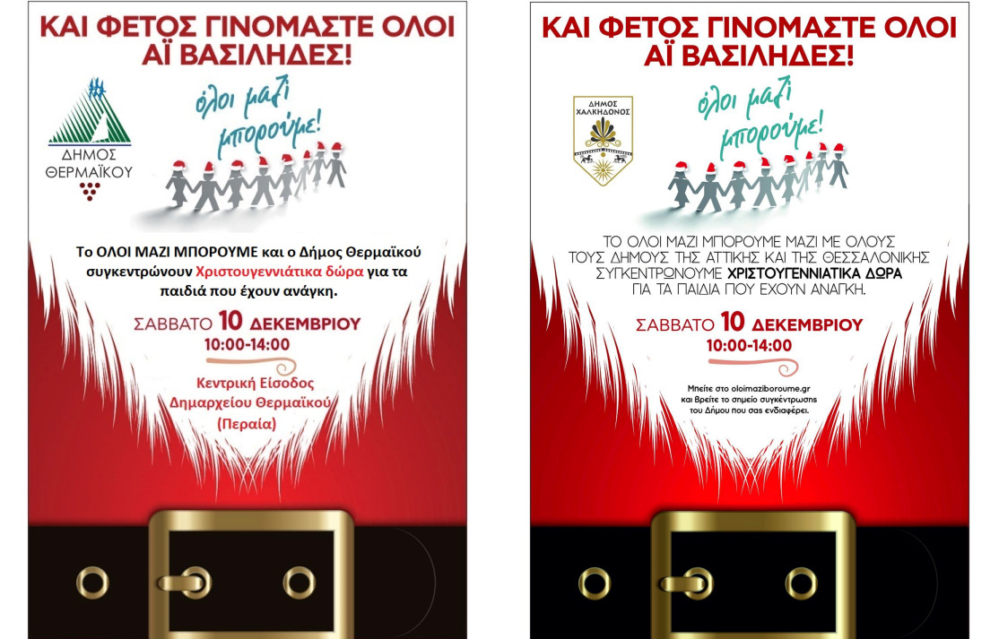 Ο Δήμος Χαλκηδόνος συμμετέχει στη δράση “ΟΛΟΙ ΜΑΖΙ ΜΠΟΡΟΥΜΕ” που διοργανώνει ο τηλεοπτικός σταθμός ΣΚΑΪ σε συνεργασία με όλους τους Δήμους της Αττικής και της Θεσσαλονίκης, ώστε να μην μείνει κανένα παιδί χωρίς το δώρο του.