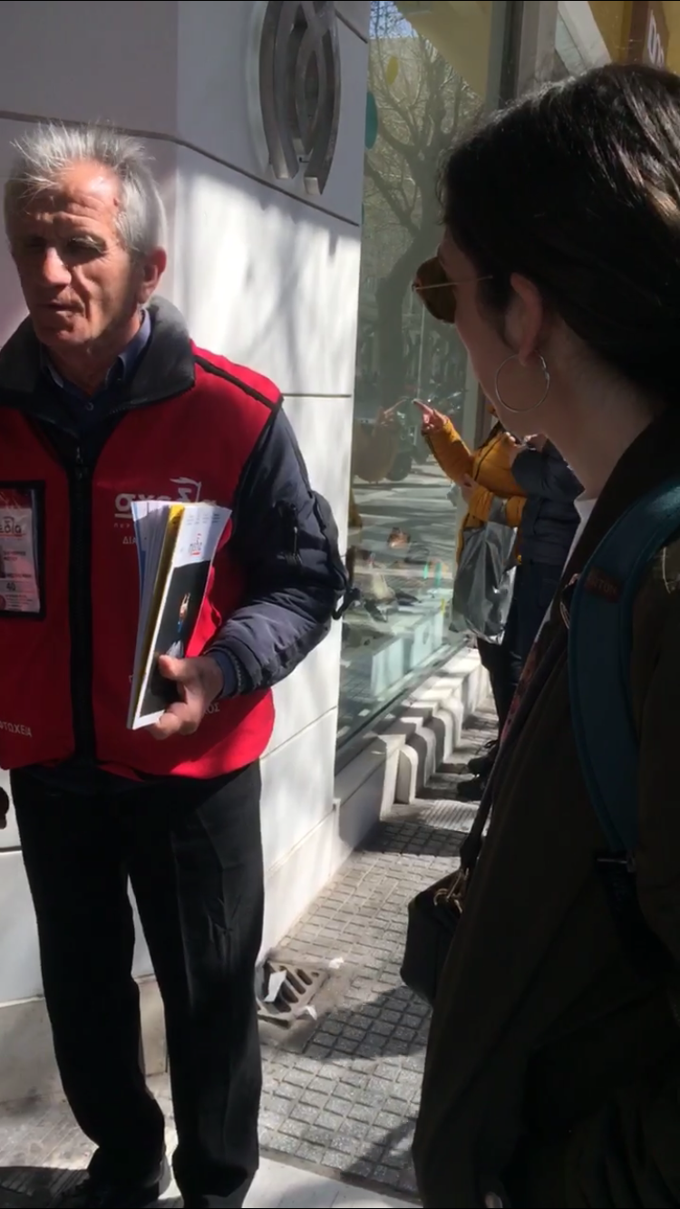 Ο Ελευθέριος Φωτίου, είναι πωλητής της Σχεδίας από τότε που δημιουργήθηκε στην Ελλάδα. Γράφει ποιήματα, εργάζεται 4-5 ώρες την μέρα εκτός Κυριακής και περιγράφει την Μη Κυβερνητική Οργάνωση σαν μία μεγάλη γιορτή και οικογένεια. Και οι δύο δήλωσαν πως δεν μπορούν να περιγράψουν τι σημαίνει αυτό το περιοδικό δρόμου που εμείς πολλές φορές αγνοούμε.