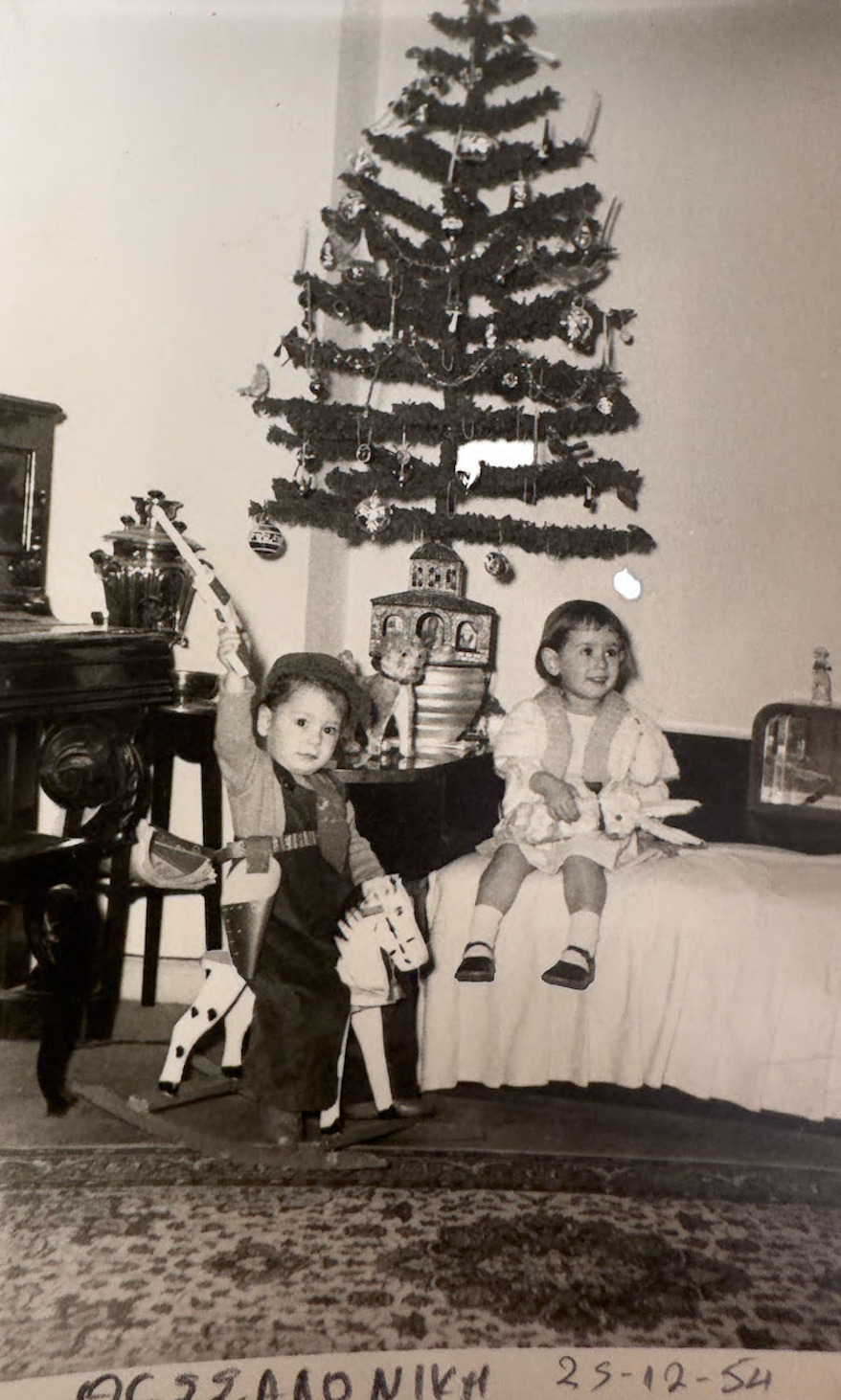 Μέσα στα αστικά σαλόνια εκείνων των δεκαετιών, την περίοδο των Χριστουγέννων, οι πόζες είναι δίπλα στο στολισμένο δέντρο, με τα παιδιά να κρατούν χαρούμενα τα καινούργια τους παιχνίδια, τις τεράστιες κούκλες, τα λαμαρινένια αυτοκινητάκια ή να ιππεύουν ξύλινα αλογάκια.