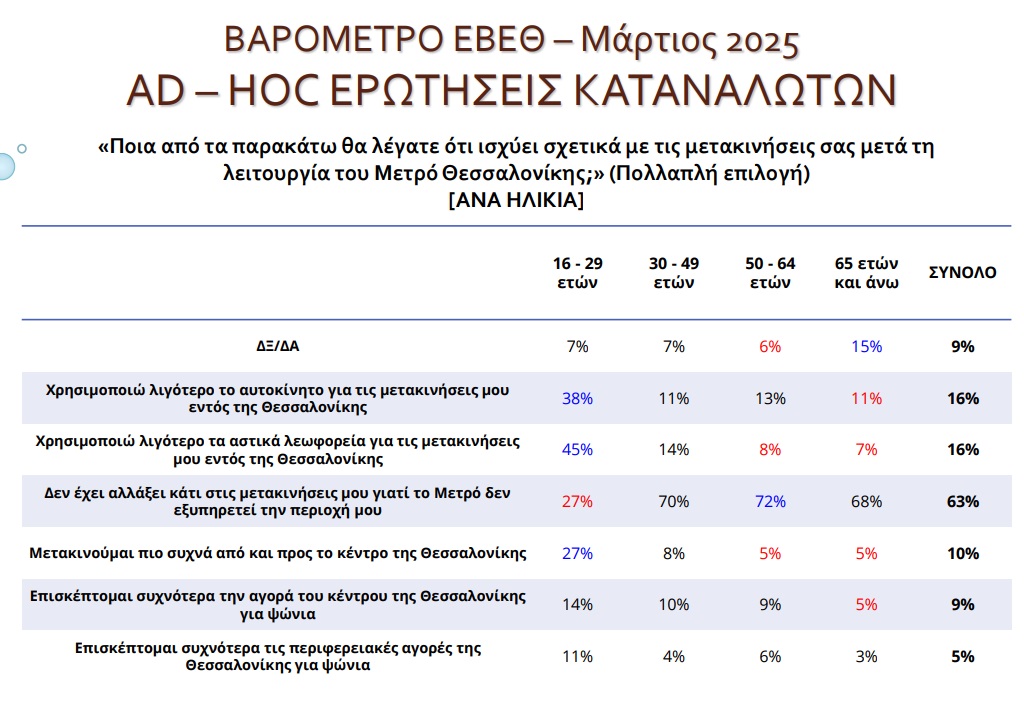 Άκρως ενδιαφέροντα είναι τα στοιχεία που αποτυπώνονται στο Βαρόμετρο του ΕΒΕΘ σχετικά με την ταυτότητα του επιβατικού κοινού του Μετρό Θεσσαλονίκης.