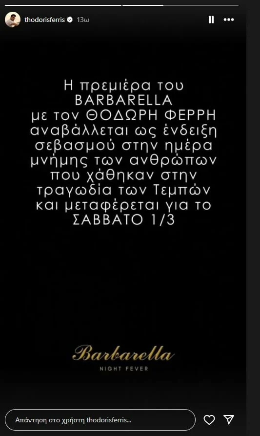Όσον αφορά τη Θεσσαλονίκη επίσημη ανακοίνωση υπάρχει από πλευράς του νυχτερινού κέντρου «MonaΛisa» όπου εμφανίζεται η Κατερίνα Λιόλιου, αλλά και το «Barbarella» όπου ήταν προγραμματισμένη η πρεμιέρα του Θοδωρή Φέρρη.
