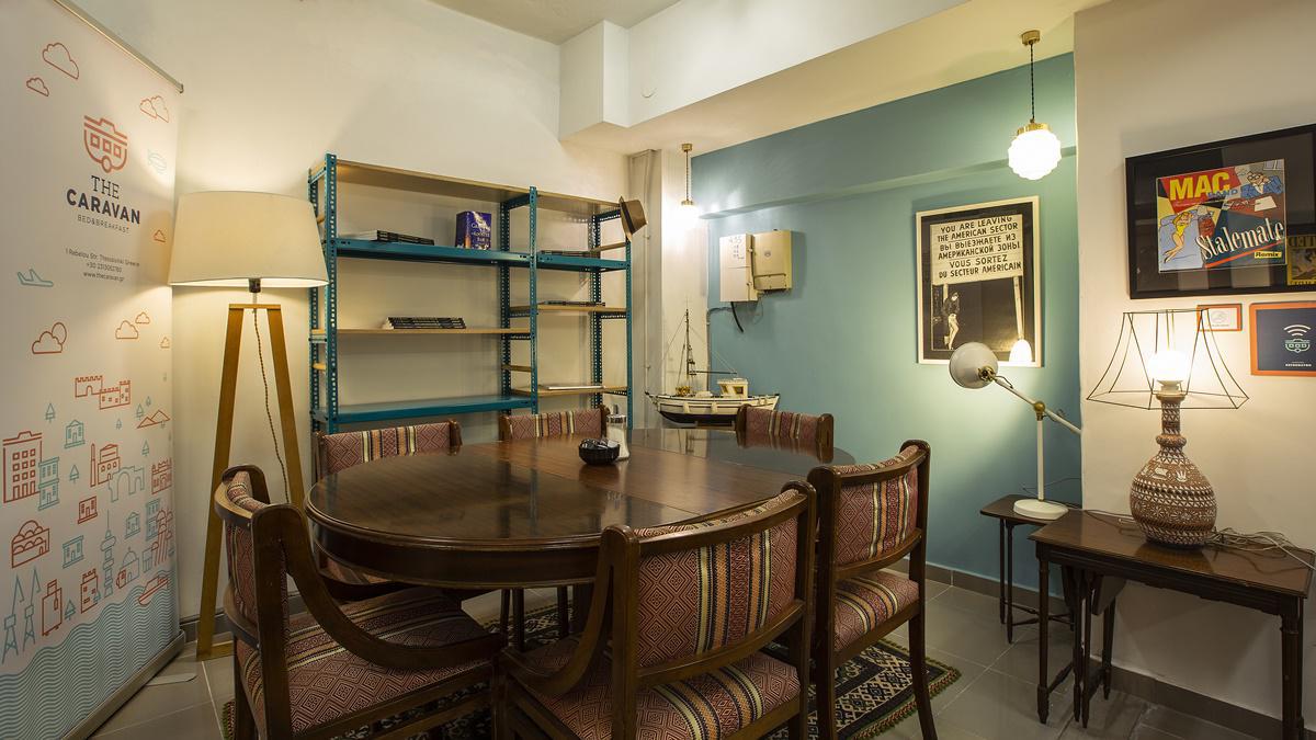 Στο ισόγειό του λειτουργεί το The Caravan Café που, από τις 07:00 το πρωί μέχρι τις 22:00 το βράδυ, προσφέρει απλόχερα την φιλοξενία του και την φιλοσοφία του σε ανθρώπους που θέλουν να διαβάσουν ή να δουλέψουν με ησυχία, σε ένα χώρο που θυμίζει σαλόνι σπιτιού! Ουσιαστικά, το ευρύχωρό του Lobby με τις πολλές παλιές, πολυχρωμές, ανακατασκευασμένες πολυθρόνες και η χαρούμενη ατμόσφαιρα, σε προδιαθέτουν για παρεϊστικη κουβεντούλα αλλά και εργασίες σε υπολογίστη και meetings.