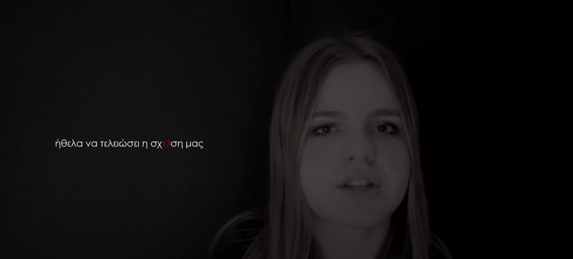 Στην αρχή του βίντεο που φέρει τον τίτλο «17» οι μαθήτριες που συμμετέχουν σε αυτό, εκφωνούν στον ρόλο των θυμάτων και σε μαύρο φόντο κάποια από τα στερεότυπα που έχουν αποτελέσει αφορμή για εγκλήματα σε βάρος γυναικών: «Με σκότωσε γιατί ήθελα να τελειώσει η σχέση μας», «κοίταξα αλλού», «φορούσα τα ρούχα που μου άρεσαν», «διαφώνησα με τις απόψεις του», «ήθελα να έρχεται στο σπίτι νωρίς και να μην ξενυχτά πίνοντας», «είχα την επιμέλεια των παιδιών», «αρνήθηκα να κοιμηθώ μαζί του», «ήθελα να βλέπω τους γονείς μου τακτικά», «μίλησα, έλεγα τη γνώμη μου», «έτσι ήθελε», «ζήλευε», «ήθελα να σπουδάσω», «ήθελε να είμαι πάντα μαζί του», «άργησα να φτάσω σπίτι, «με σκότωσε γιατί είναι άνδρας και ήμουν γυναίκα».
