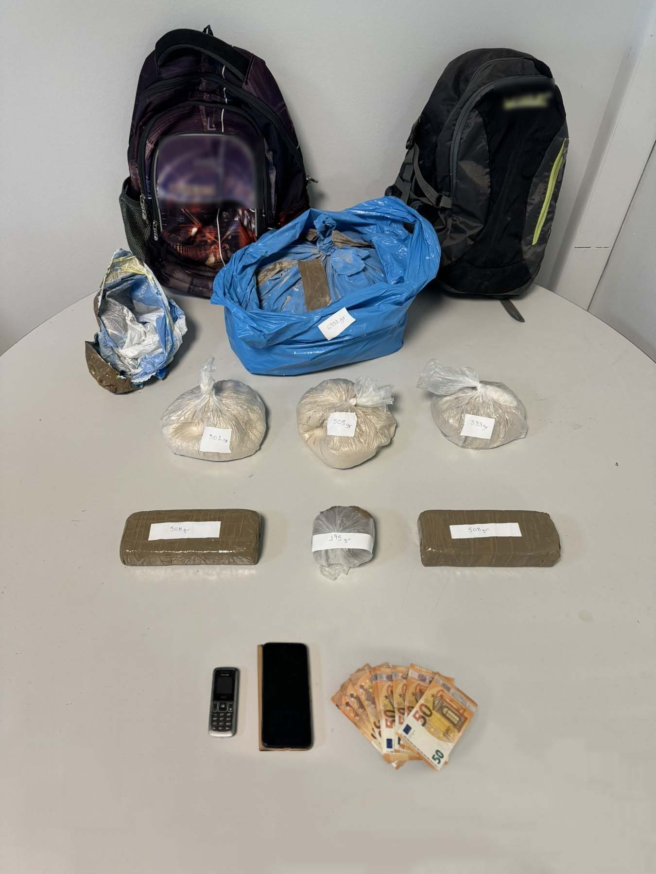 Επιπλέον, στην κατοχή του βρέθηκε το χρηματικό ποσό των 550 ευρώ, ως προερχόμενο από εμπορία ναρκωτικών και δύο κινητά τηλέφωνα, που χρησιμοποιούσε για τις παράνομες συναλλαγές.