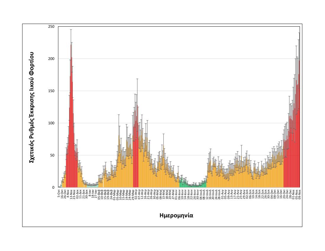 Όπως φαίνεται στα διαγράμματα που παρουσιάζει το ΑΠΕ-ΜΠΕ (επισυνάπτονται), οι τιμές του ιικού φορτίου προσεγγίζουν πλέον τις υψηλότερες τιμές του σφοδρού κύματος της πανδημίας του περσινού Νοέμβρη.
