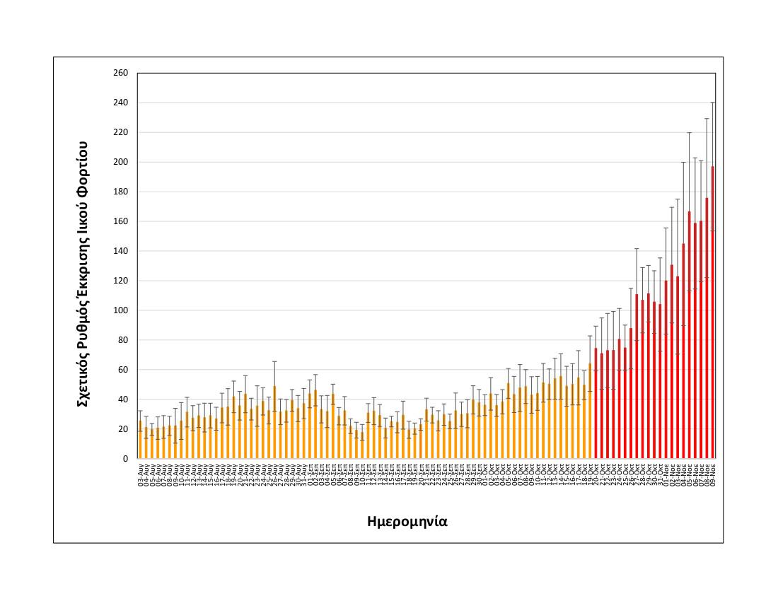 Συγκεκριμένα, στα δείγματα που λαμβάνονται καθημερινά στην είσοδο της Εγκατάστασης Επεξεργασίας Λυμάτων Θεσσαλονίκης, αναφορικά με τις εξορθολογισμένες τιμές σχετικής έκκρισης ιικού φορτίου, η μέση τιμή των δύο πιο πρόσφατων μετρήσεων, δηλαδή της Δευτέρας 08/11 και της Τρίτης 09/11, είναι: