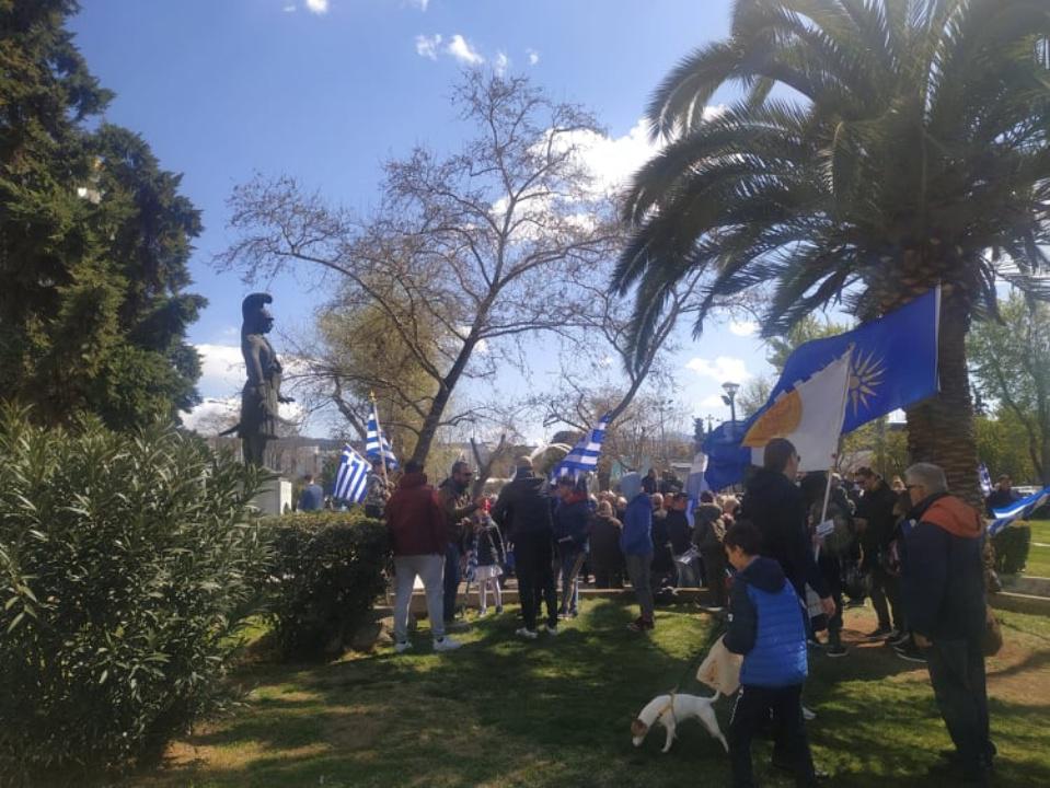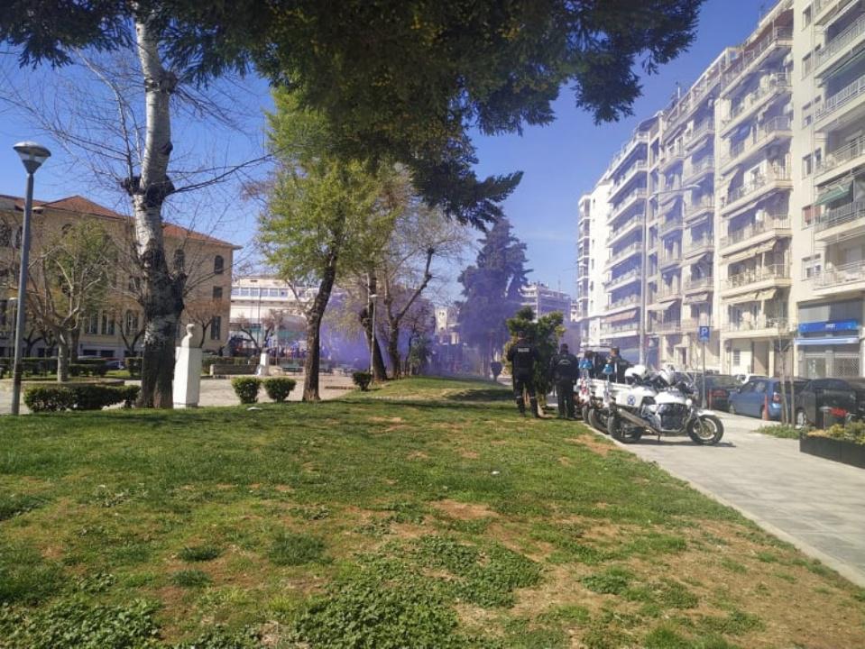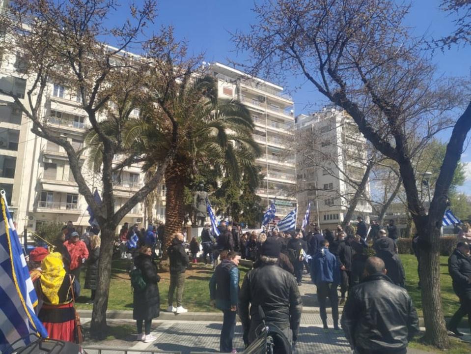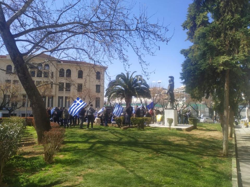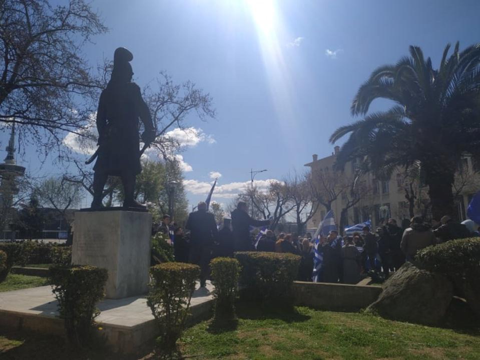H πορεία κατέληξε στο άγαλμα του Κολοκοτρώνη επί της Τσιμισκή. Εκεί φώναξαν συνθήματα και κατέθεσαν στεφάνι στη μνήμη των αγωνιστών της Εθνικής Παλιγγενεσίας.