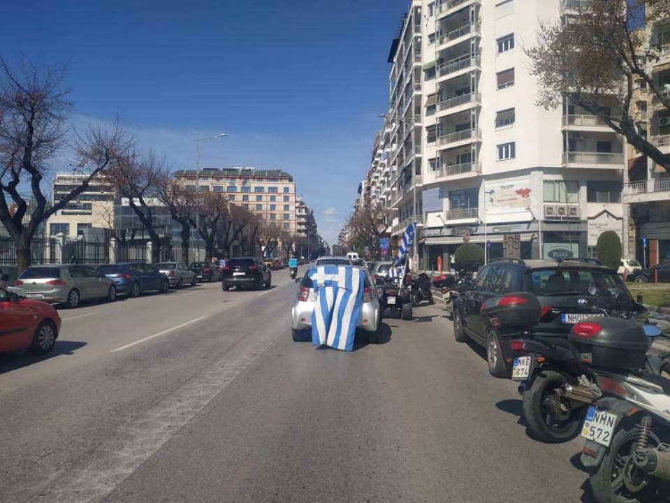Τα μέλη του Ιερού Λόχου με σημαίες στα χέρια διέσχισαν κεντρικούς δρόμους της πόλης με μηχανάκια και ΙΧ.