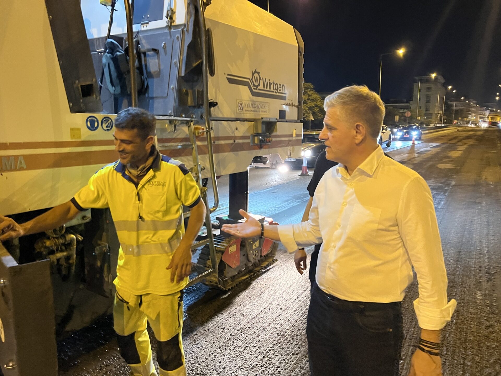 Συνεχίζουμε με τους ίδιους γρήγορους ρυθμούς και συστηματική παρακολούθηση των προγραμματισμένων τεχνικών επεμβάσεων για να αποδώσουμε στους οδηγούς, τους πεζούς και τους κατοίκους της Δυτικής Θεσσαλονίκης, την κύρια οδική αρτηρία εισόδου στην πόλη αισθητικά αναβαθμισμένη και με εξασφαλισμένα τα χαρακτηριστικά της εύκολης, άνετης κυκλοφορίας και της ενισχυμένης οδικής ασφάλειας», επισημαίνει ο κ. Γιουτίκας.