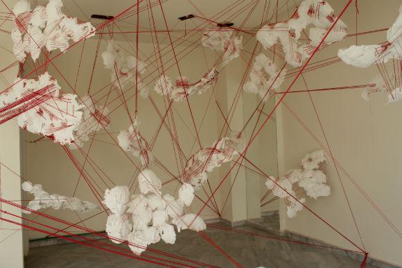 Μία βιτρίνα είναι μια παγίδα. Τόσο για τον καταστηματάρχη που αν τα έξοδα είναι περισσότερα από τα έσοδα του, όσο και για τους καταναλωτές που πέφτουν θύματα σε ανούσιες αγορές χρεώνοντας τις κάρτες τους . Παγίδες στο ζωικό βασίλειο δημιουργούν τα ζώα για να εξασφαλίσουν την τροφή τους… Με αφορμή το πλέγμα του ιστού της αράχνης που πλέκεται γρήγορα και παντού δημιουργείται εγκατάσταση στον χώρο σαν παγίδα χρωμάτων… αλλά και χρημάτων! Τα χρώματα συμβολίζουν τις πολύχρωμες ετικέτες που μας τραβάνε την προσοχή, καθώς και τα χρωματιστά χαρτονομίσματα. Όλα είναι μια χρωματική παγίδα στην οποία καταλήγουμε εγκλωβισμένοι, ωθούμενοι από τον ΦΟΒΟ ΚΕΝΟΥ. Καλλιτέχνες: Ελένη Κασιμάτη, Λωίδα Νεδέλτσου, Νόρα Παυλίδη. Βηλαρά 2