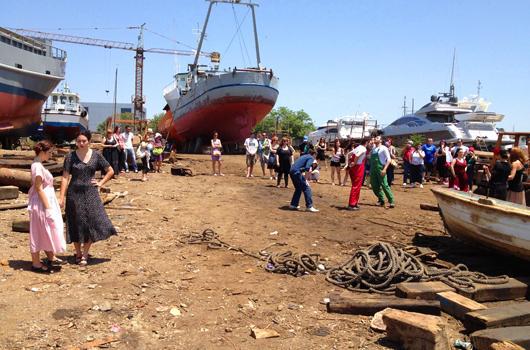 Οι ξεναγήσεις συνοδεύτηκαν από ένα αναπάντεχο θεατρικό δρώμενο εμπνευσμένο από σκηνές της ζωής των ναυτικών από τη δεκαετία του ’40, που ετοίμασε η σκηνοθέτης-ηθόποιος Νόπη Ράντη σε συνεργασία με τον μουσικό, Δημήτρη Δαλέζη και με τη θεατρική ομάδα της Ακαδημίας Τέχνης από το ΙΕΚ ΑΚΜΗ. Ένα μοναδικό ταξίδι, στο χρόνο, την ιστορία των καρνάγιων, τα μυστικά της σκουριάς και του ξύλου, τους ήχους της θάλασσας, τη μυρωδιά της αλμύρας.