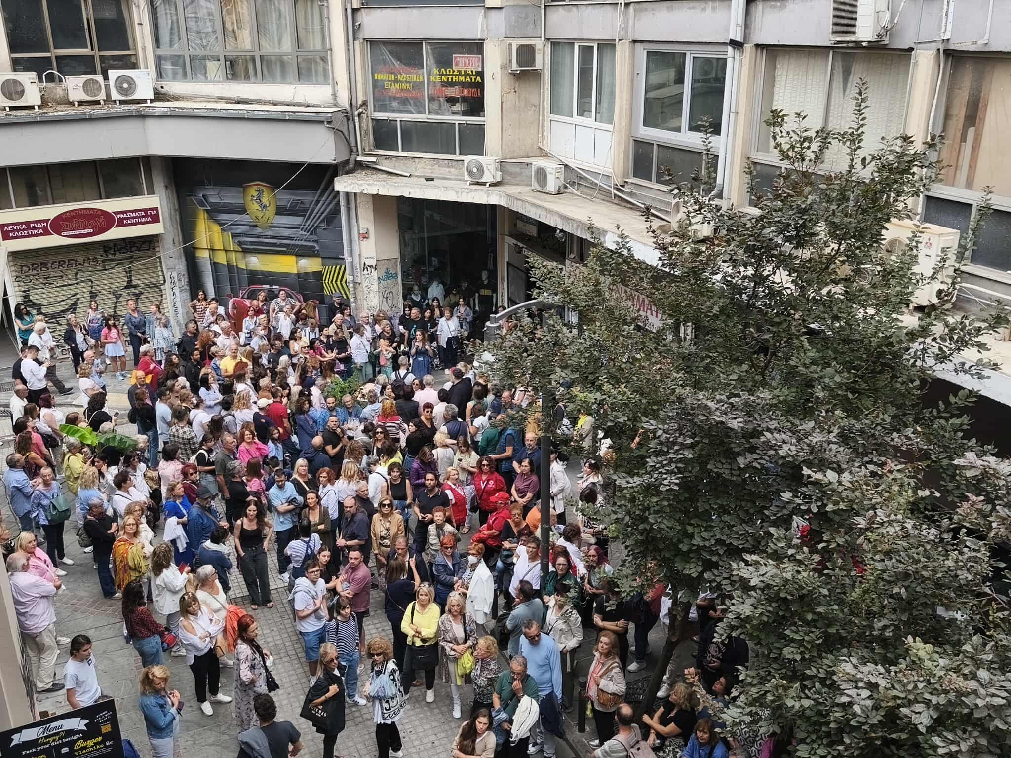 12:06 μ.μ.: Η μουσική συνάντηση των δύο συγκροτημάτων στην Αριστοτέλους με Ερμού, με πλήθος κόσμου να ακολουθεί.
