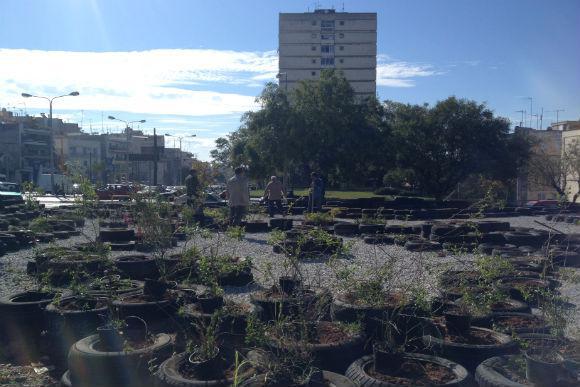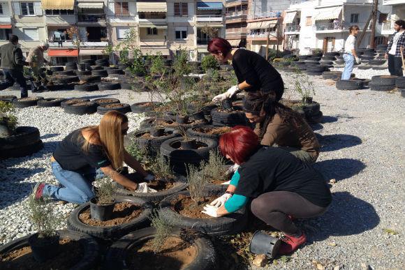 Την Κυριακή 20 Οκτωβρίου μαζευτήκαμε οι εθελοντές και η ομάδα της Parallaxi και οι εργαζόμενοι της υπηρεσίας Πρασίνου του Δήμου Θεσσαλονίκης και ξεκινήσαμε με την καθοδήγηση του Νίκου Μυσιρλή τη φύτευση των 400 συνολικά θάμνων, δέντρων και δενδρυλλίων που θα αποτελέσουν την πανίδα αυτού του πάρκου. Για αρκετές ώρες κάτω από το δυνατό ήλιο η ομάδα δούλεψε εντατικά και η εικόνα του πάρκου στο τέλος της ημέρας άλλαξε. Το πράσινο άρχισε να σκιάζει το μαύρο των ελαστικών, που στην πορεία θα αποκτήσουν χρώμα με τη βοήθεια σχολείων της περιοχής που θα επέμβουν βάφοντας τα, ενώ η τελική φάση της μετατροπής του Αμφιθέατρου θα συνοδευτεί και από μια σειρά εκδηλώσεις που θα εγκαινιάσουν στην πραγματικότητα την παράδοση του στη γειτονιά.