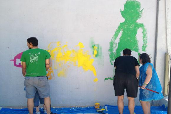 Εκεί στην ολοκαίνουργια παιδική χαρά που εγκαινίασε ο Δήμος Θεσσαλονίκης αυτή την εβδομάδα, αναλάβαμε με την άδεια των κατοίκων της παρακείμενης οικοδομής να μεταμορφώσουμε το σόκορο της πολυκατοικίας. Αρωγός μας σε αυτή τη δράση δεν ήταν επαγγελματίες muralists αλλά τα παιδιά του Συλλόγου Γονέων, Κηδεμόνων και Φίλων ΑΜΕΑ της Επαρχίας Λαγκαδά “ΑΝΟΙΞΗ”, ενός συλλόγου που δουλεύει επίμονα χρόνια τώρα με τα παιδιά αυτά σε δεκάδες διαφορετικές δράσεις και δραστηριότητες όπως ο χορός, η γυμναστική, το κολύμπι, οι κατασκευές, η κοινωνικοποίηση και ο εθελοντισμός, κόντρα στην περιθωριοποίηση και τον αποκλεισμό.