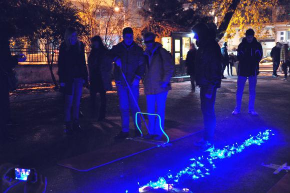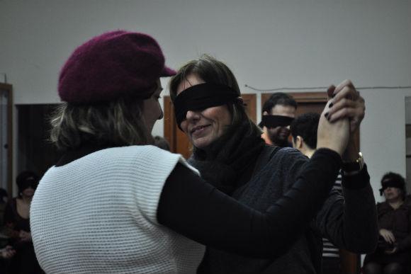 Η διαδρομή ξεκινούσε από την αυλή όπου υπήρχαν εμπόδια όπως κώνοι και στεφάνια. Στη συνέχεια, το ζευγάρι έμπαινε στο κτίριο και ανέβαινε με τις σκάλες στον τελευταίο όροφο όπου, πάντα με τα μάτια των συμμετεχόντων δεμένα, εκτελούσε κινήσεις χορού.Το παιχνίδι είχαμε την ευκαιρία να παίξουμε και αρκετοί από τους εθελοντές της δράσης. Ανάμεσά τους κι εγώ.